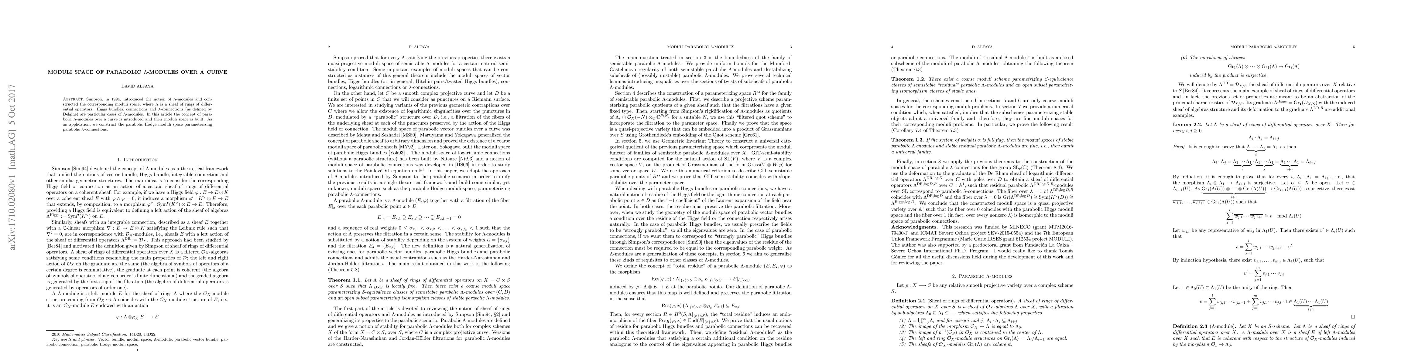 Simpson, in 1994, introduced the notion of $\Lambda$-modules and constructed the corresponding moduli space, where $\Lambda$ is a sheaf of rings of differential operators. Higgs bundles, connections and $\lambda$-connections (as defined by Delgine) are particular cases of $\Lambda$-modules. In this article the concept of parabolic $\Lambda$-modules over a curve is introduced and their moduli space is built. As an application, we construct the parabolic Hodge moduli space parameterizing parabolic $\lambda$-connections.