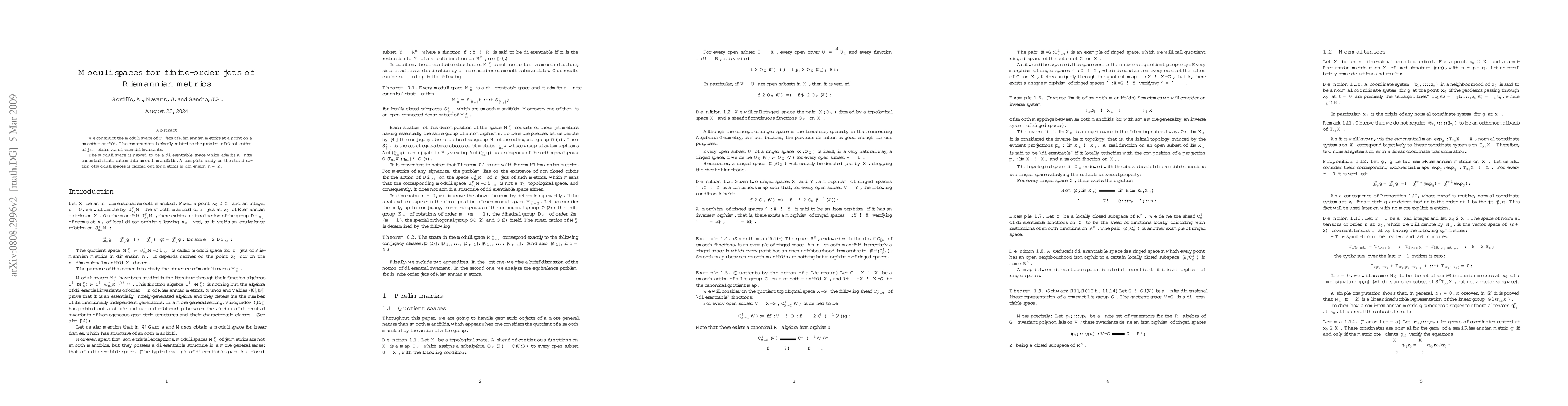 This research paper constructs a moduli space for finite-order jets of Riemannian metrics on smooth manifolds, providing a differentiable space with a finite canonical stratification into smooth manifolds.