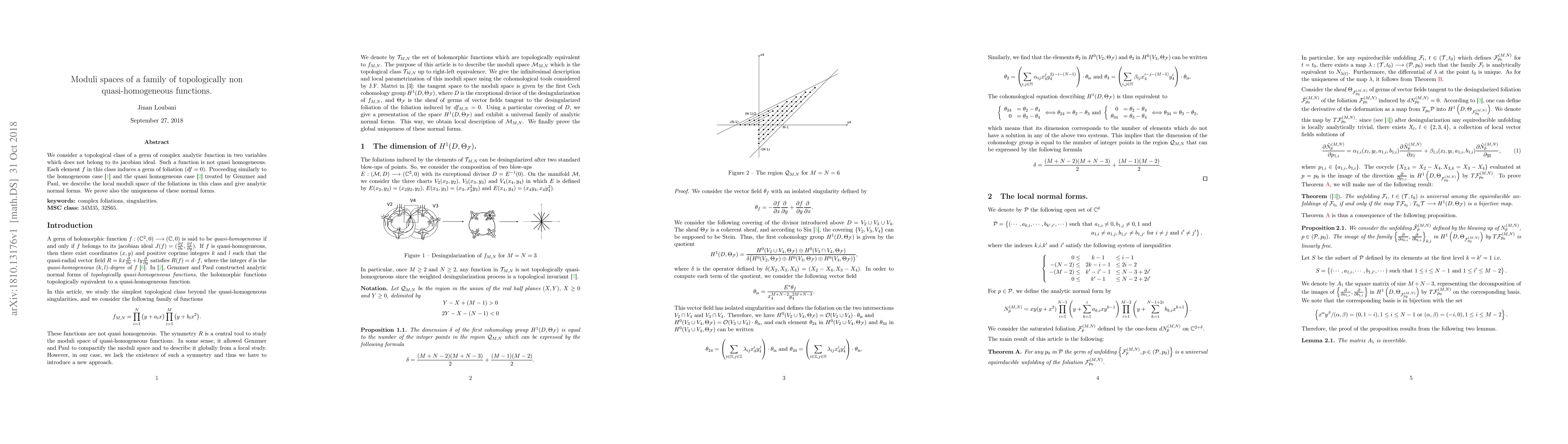 We consider a topological class of a germ of complex analytic function in two variables which does not belong to its jacobian ideal. Such a function is not quasi homogeneous. Each element f in this class induces a germ of foliation (df = 0). Proceeding similarly to the homogeneous case and the quasi homogeneous case treated by Genzmer and Paul, we describe the local moduli space of the foliations in this class and give analytic normal forms. We prove also the uniqueness of these normal forms.