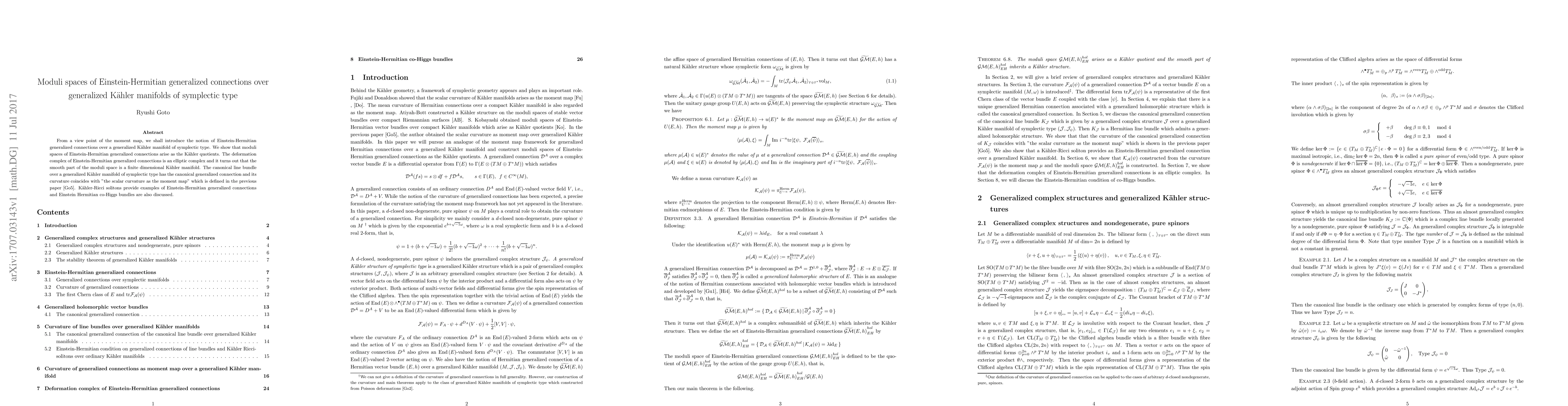 This paper introduces Einstein-Hermitian generalized connections over generalized Kähler manifolds of symplectic type, demonstrating that their moduli spaces arise as Kähler quotients. The smooth part of these moduli spaces is a finite-dimensional Kähler manifold, with the deformation complex being an elliptic complex.