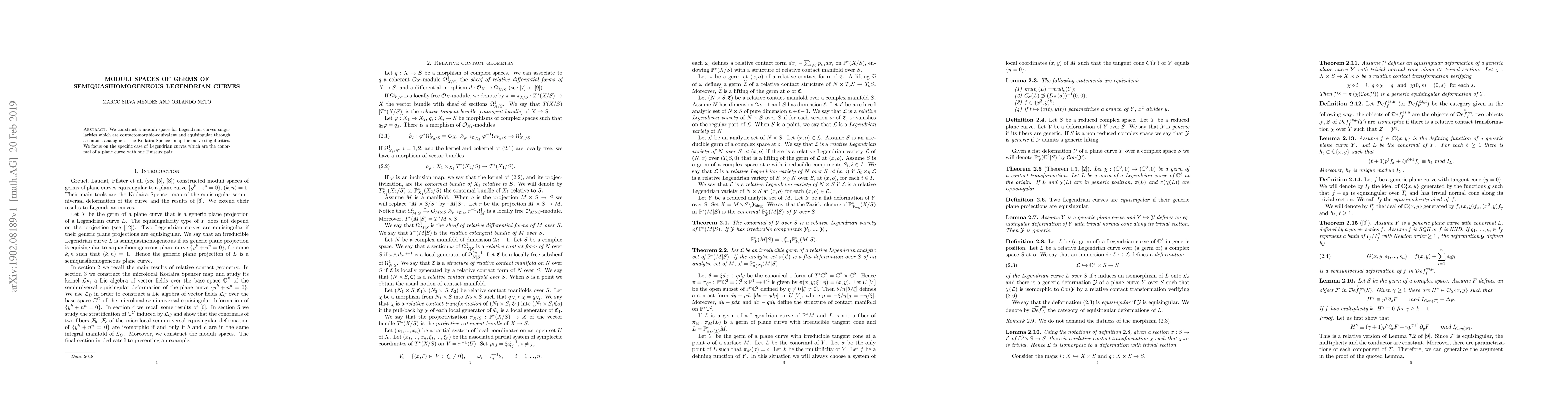 This paper constructs a moduli space for semiquasihomogeneous Legendrian curve singularities, employing a contact analogue of the Kodaira-Spencer map, and specifically examines curves arising from the conormal of plane curves with a single Puiseux pair.