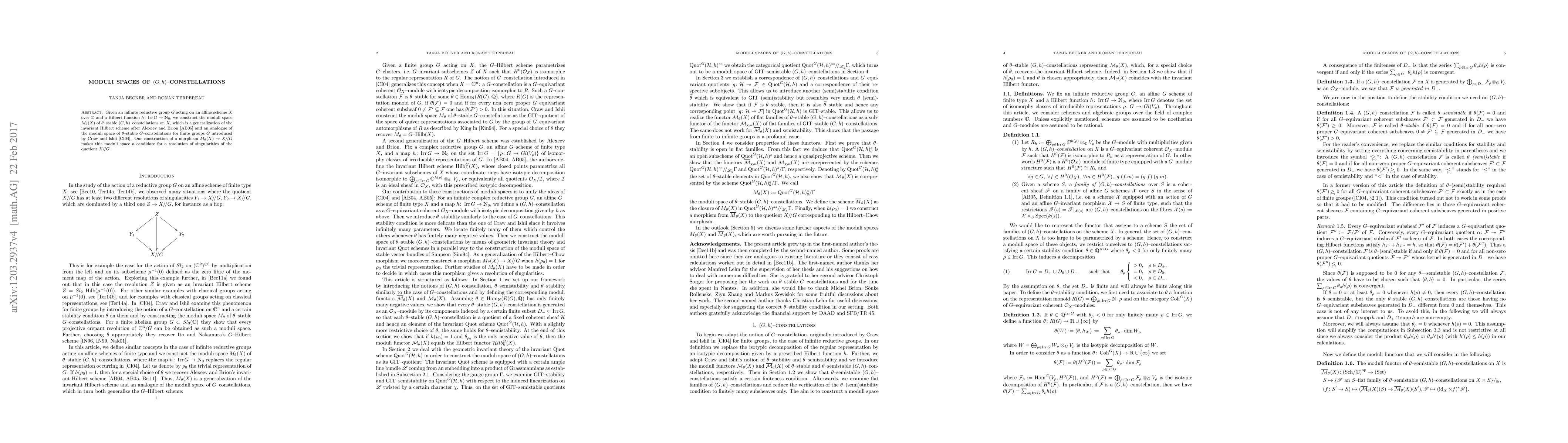 Given an infinite reductive group G acting on an affine scheme X over C and a Hilbert function h: Irr G \to N_0, we construct the moduli space M_{\theta}(X) of \theta-stable (G,h)-constellations on X, which is a generalization of the invariant Hilbert scheme after Alexeev and Brion and an analogue of the moduli space of \theta-stable G-constellations for finite groups introduced by Craw and Ishii. Our construction of a morphism M_{\theta}(X) \to X//G makes this moduli space a candidate for a resolution of singularities of the quotient X//G.