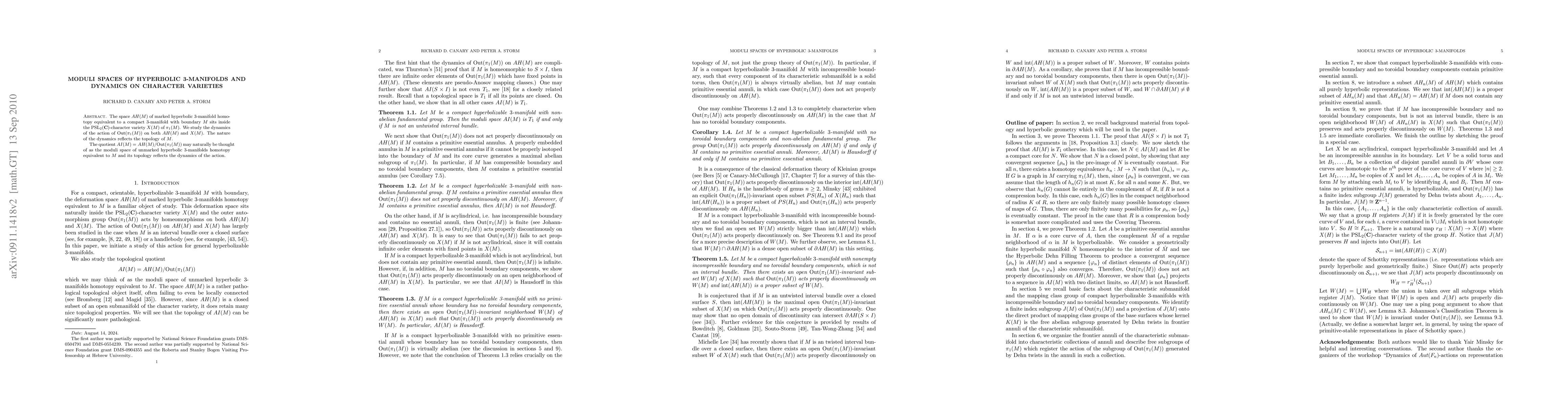 This paper studies the dynamics of the action of Out(α_1(M)) on moduli spaces of hyperbolic 3-manifolds, revealing relationships between topology and dynamics.
