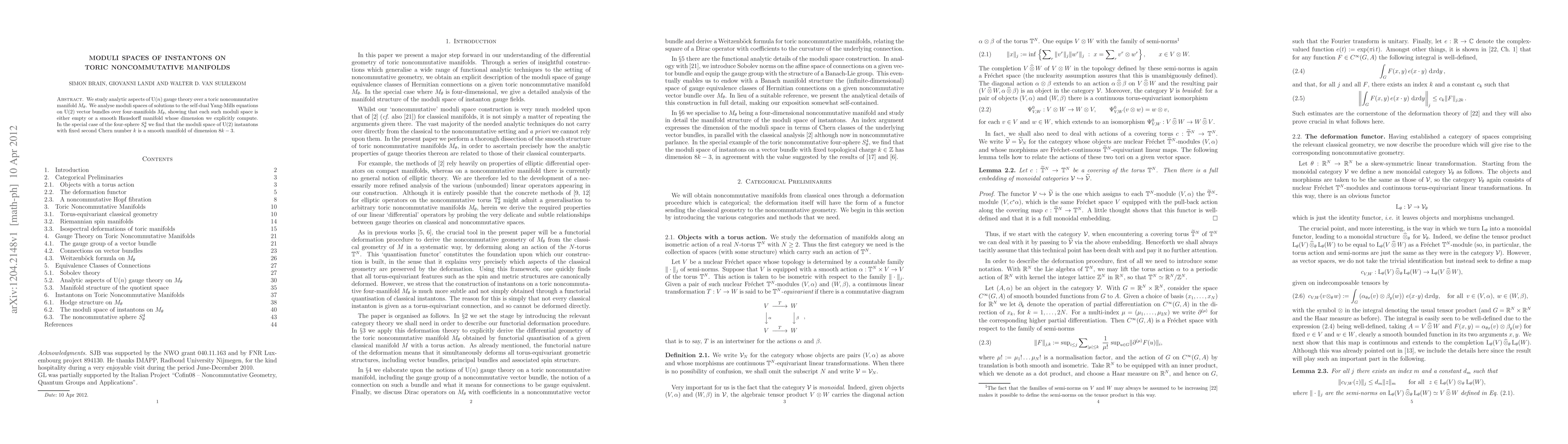 We study analytic aspects of U(n) gauge theory over a toric noncommutative manifold $M_\theta$. We analyse moduli spaces of solutions to the self-dual Yang-Mills equations on U(2) vector bundles over four-manifolds $M_\theta$, showing that each such moduli space is either empty or a smooth Hausdorff manifold whose dimension we explicitly compute. In the special case of the four-sphere $S^4_\theta$ we find that the moduli space of U(2) instantons with fixed second Chern number $k$ is a smooth manifold of dimension $8k-3$.