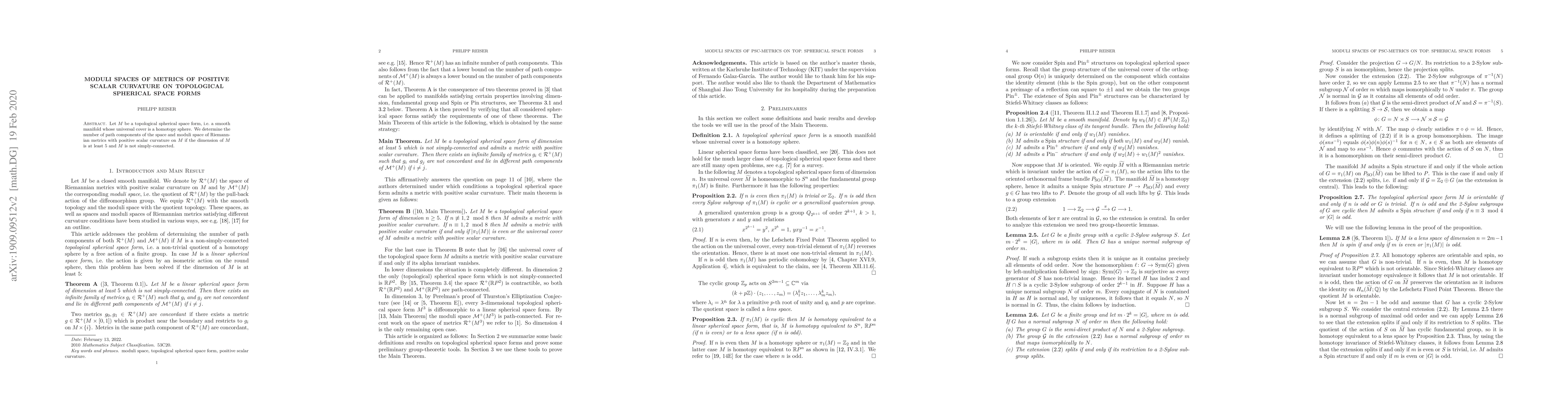 This paper investigates the moduli spaces of Riemannian metrics with positive scalar curvature on topological spherical space forms in dimensions greater than or equal to 5, determining the number of path components when the manifold is not simply-connected.