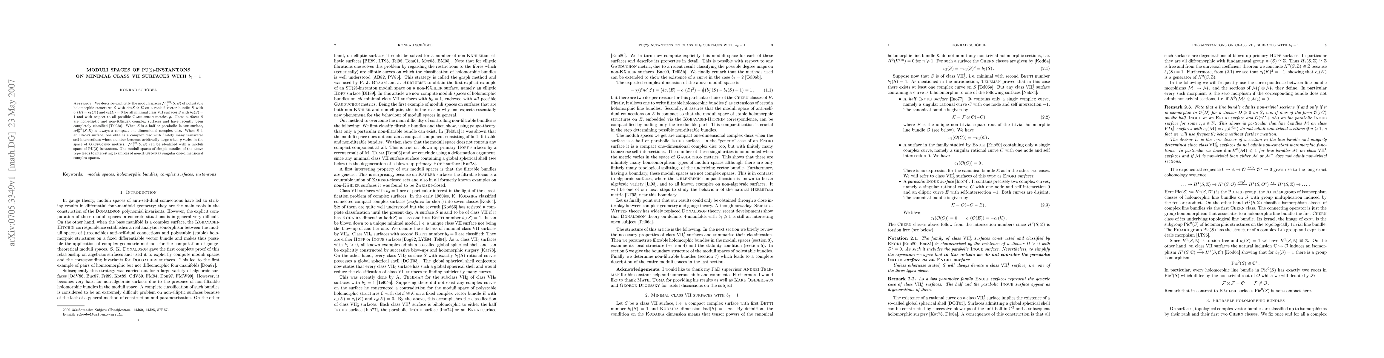 The paper details the moduli spaces $M^{pst}_g(S,E)$ of polystable holomorphic structures on rank 2 vector bundles over minimal class VII surfaces with $b_2=1$. For certain subclasses, these spaces are compact complex discs, while for Enoki surfaces they feature self-intersections, forming non-Hausdorff singular one-dimensional complex spaces.