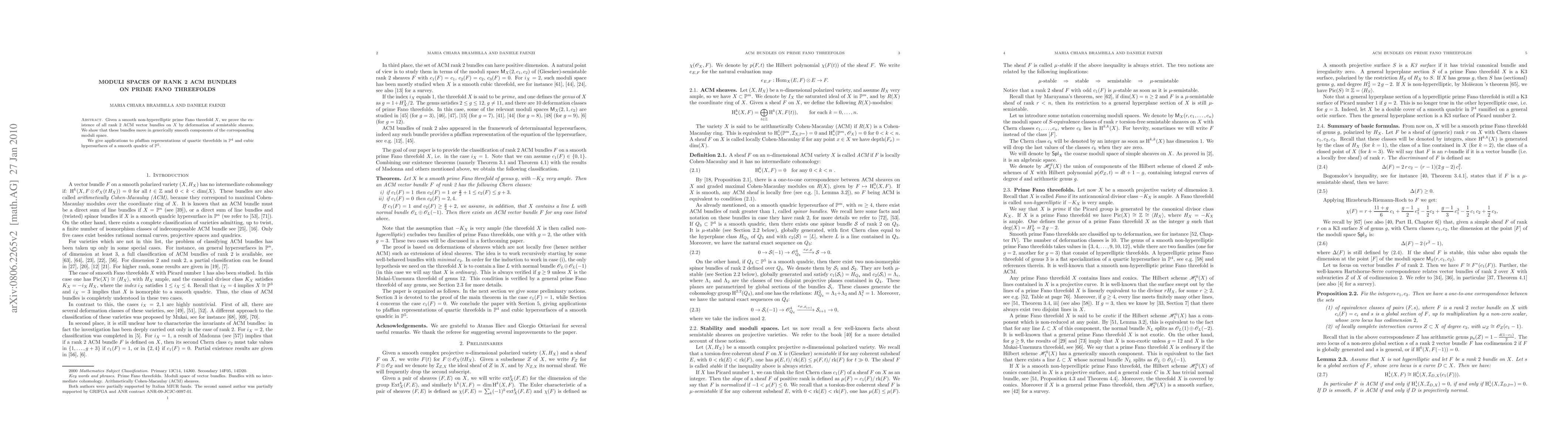 The paper establishes the existence of all rank 2 ACM vector bundles on a smooth non-hyperelliptic prime Fano threefold via deformation of semistable sheaves, and demonstrates their movement in generically smooth components of the moduli space. Applications are provided to pfaffian representations of quartic threefolds and cubic hypersurfaces of a smooth quadric in P^5.