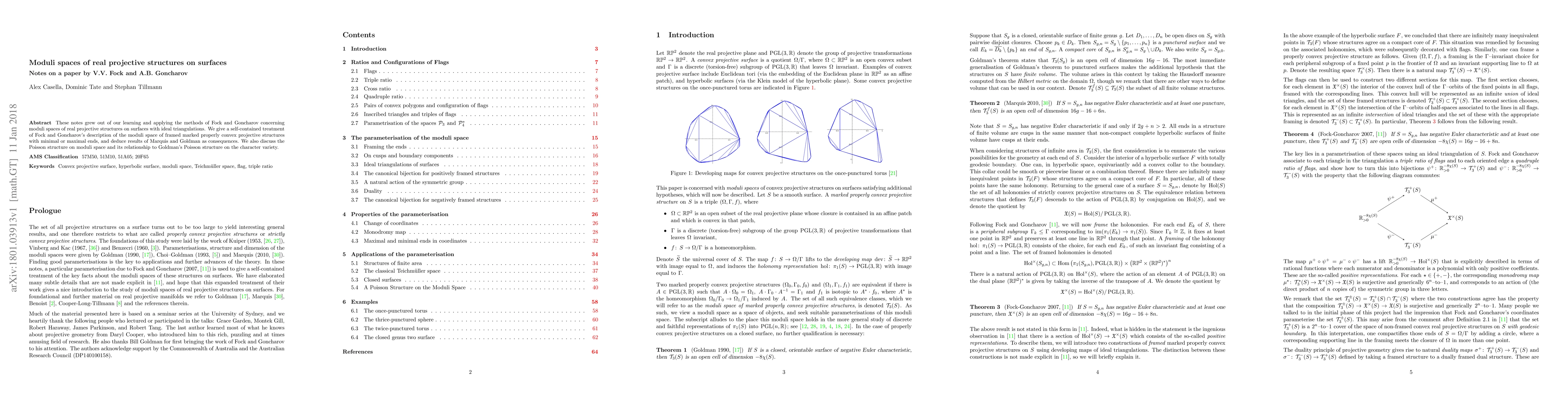 This paper summarizes Fock and Goncharov's methods for studying moduli spaces of real projective structures on surfaces with ideal triangulations, providing a detailed account of their framework and demonstrating its implications, including results by Marquis and Goldman, and the connection to Poisson structures on moduli spaces.