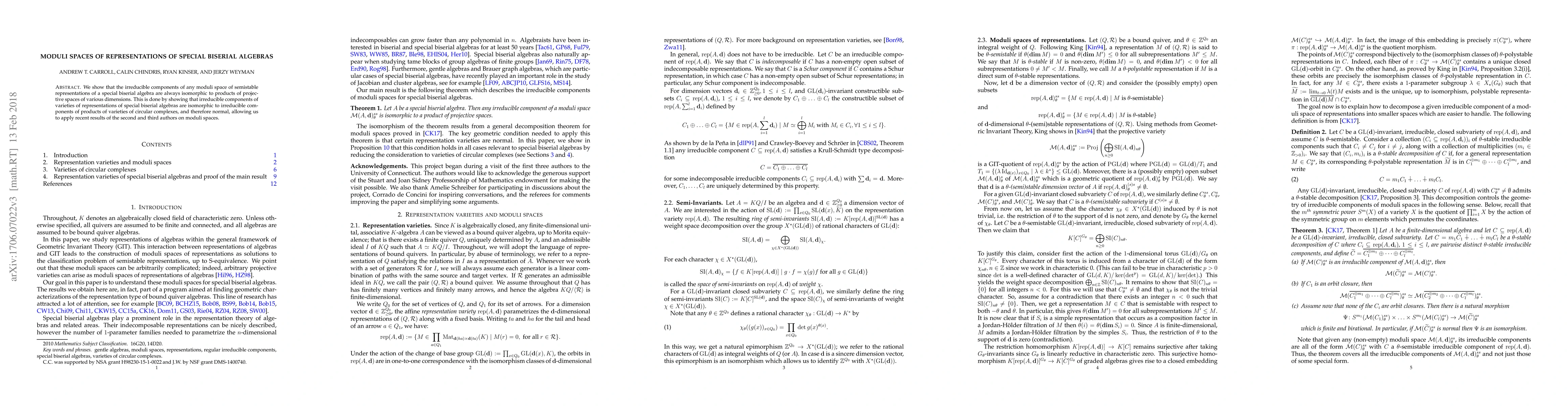 We show that the irreducible components of any moduli space of semistable representations of a special biserial algebra are always isomorphic to products of projective spaces of various dimensions. This is done by showing that irreducible components of varieties of representations of special biserial algebras are isomorphic to irreducible components of products of varieties of circular complexes, and therefore normal, allowing us to apply recent results of the second and third authors on moduli spaces.