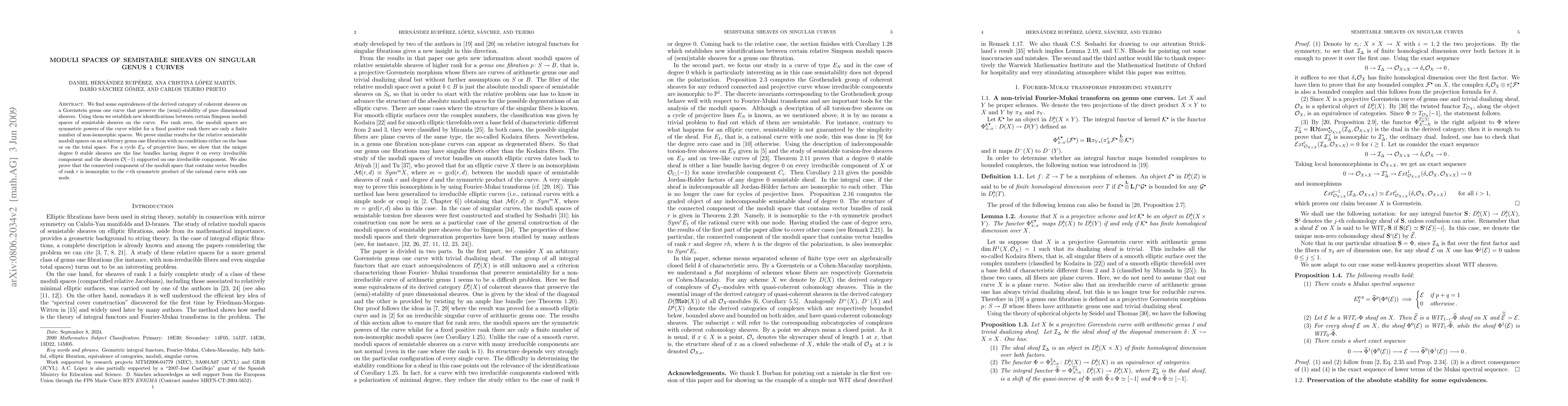 This paper establishes equivalences in the derived category of coherent sheaves on singular genus one curves that maintain (semi)-stability, leading to new identifications of Simpson moduli spaces. For rank zero, these spaces are symmetric powers of the curve, while fixed positive ranks yield a finite number of non-isomorphic spaces.