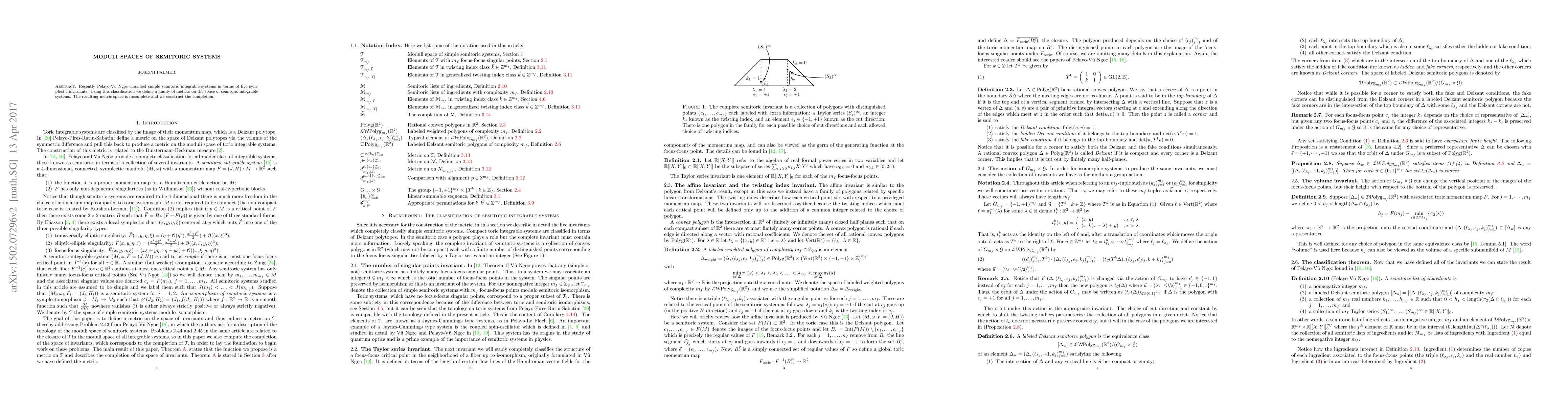 Researchers classify semitoric integrable systems using symplectic invariants and define a metric space on these systems, leading to an incomplete and incomplete completion.