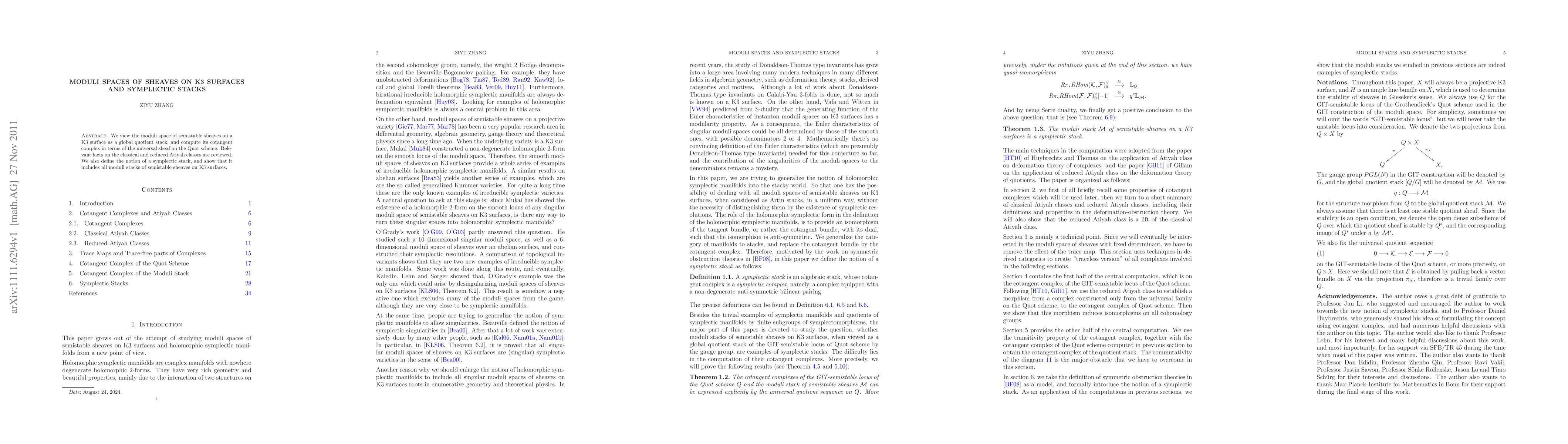 This paper explores the global quotient stack structure of moduli spaces of semistable sheaves on K3 surfaces, computes their cotangent complexes, and introduces symplectic stacks, proving that these encompass all such moduli stacks. Key aspects include discussions on classical and reduced Atiyah classes.