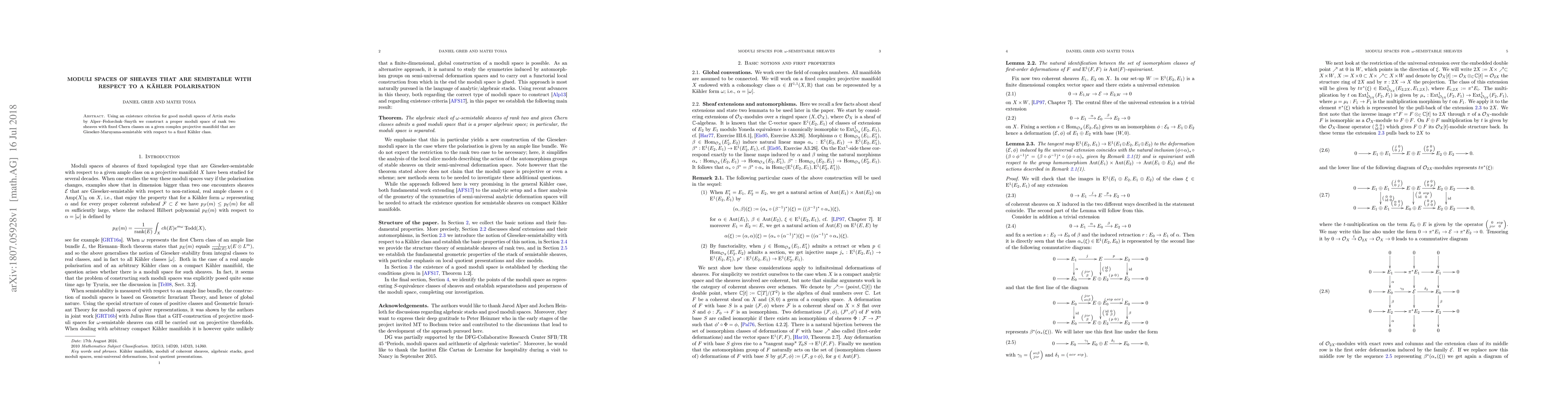 Using an existence criterion for good moduli spaces of Artin stacks by Alper-Fedorchuk-Smyth we construct a proper moduli space of rank two sheaves with fixed Chern classes on a given complex projective manifold that are Gieseker-Maruyama-semistable with respect to a fixed K\"ahler class.
