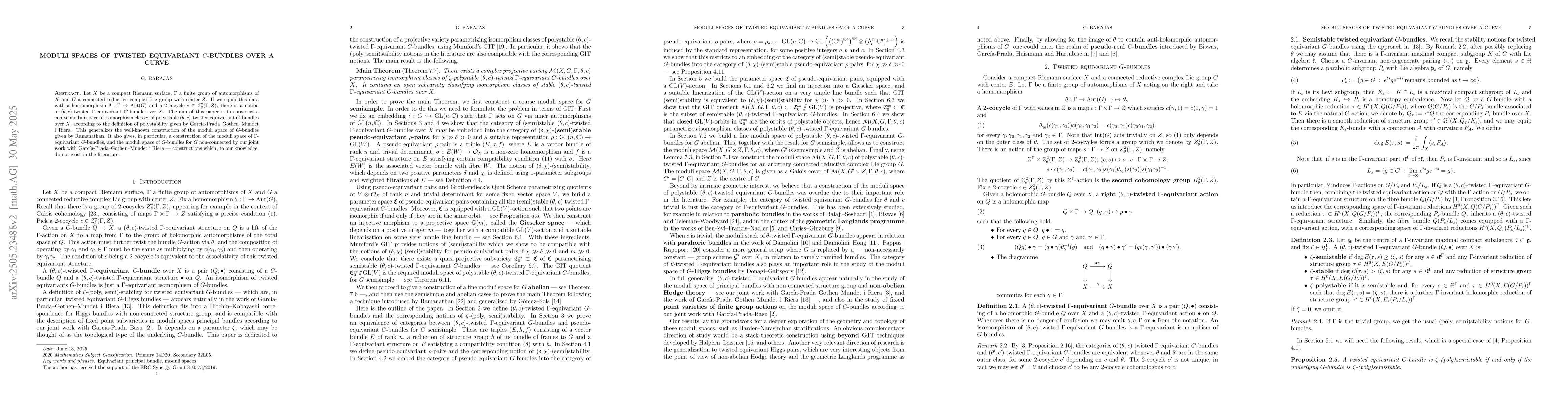 The paper introduces a detailed construction of moduli spaces for twisted equivariant G-bundles, including a novel approach to polystability conditions and a comparison of stability notions for pseudo-equivariant G-bundles and (ρa,b,c)-pairs.