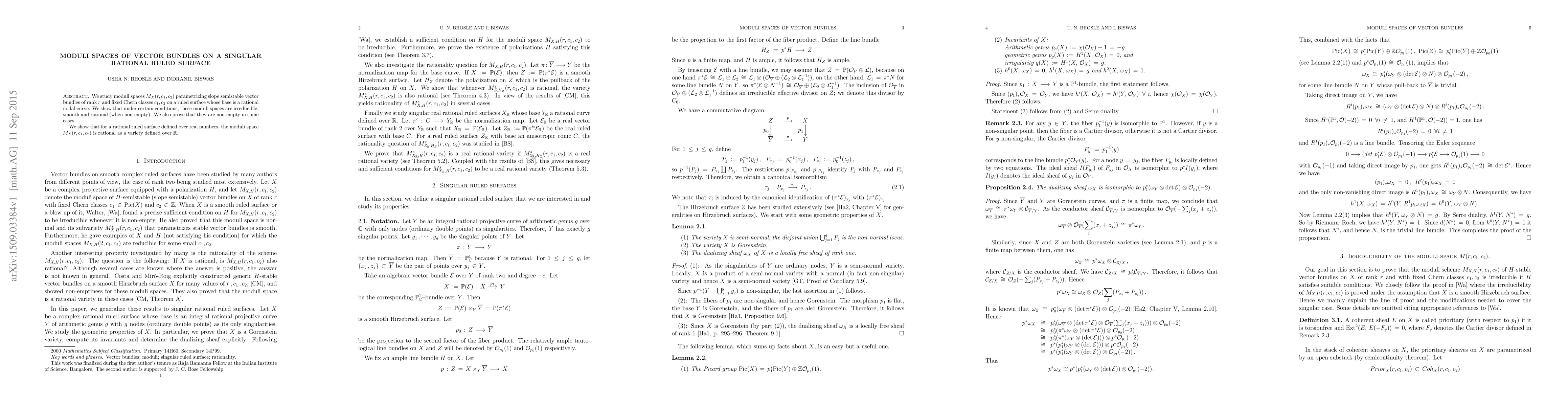 Summary: This paper investigates the moduli spaces of vector bundles on singular rational ruled surfaces, proving their irreducibility, smoothness, and rationality under specific conditions. It also demonstrates that these moduli spaces are non-empty in certain scenarios and are rational when defined over the reals.
