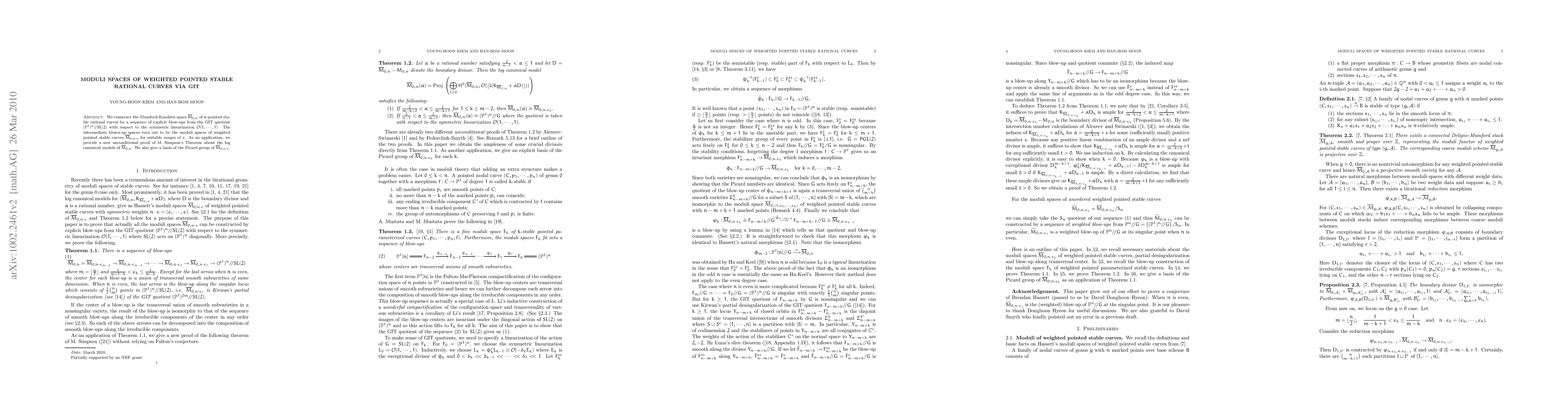 This paper constructs the moduli space of pointed stable rational curves using GIT and explicit blow-ups, revealing these spaces as weighted pointed stable curve moduli spaces. It provides an unconditional proof of Simpson's Theorem on the log canonical models and establishes a basis for the Picard group of these moduli spaces.