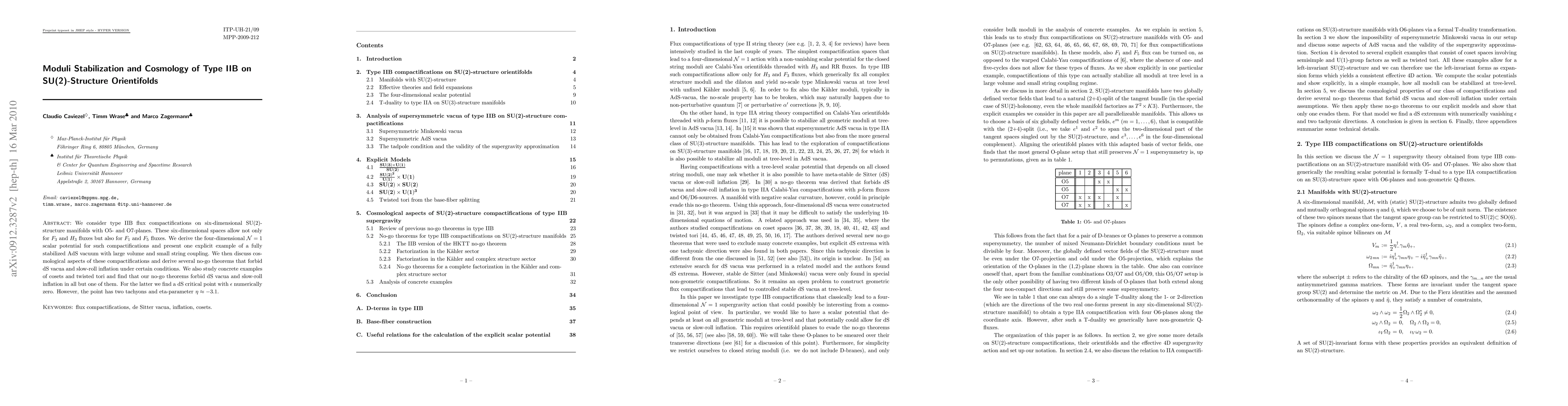 We consider type IIB flux compactifications on six-dimensional SU(2)-structure manifolds with O5- and O7-planes. These six-dimensional spaces allow not only for F_3 and H_3 fluxes but also for F_1 and F_5 fluxes. We derive the four-dimensional N=1 scalar potential for such compactifications and present one explicit example of a fully stabilized AdS vacuum with large volume and small string coupling. We then discuss cosmological aspects of these compactifications and derive several no-go theorems that forbid dS vacua and slow-roll inflation under certain conditions. We also study concrete examples of cosets and twisted tori and find that our no-go theorems forbid dS vacua and slow-roll inflation in all but one of them. For the latter we find a dS critical point with \epsilon numerically zero. However, the point has two tachyons and eta-parameter \eta \approx -3.1.