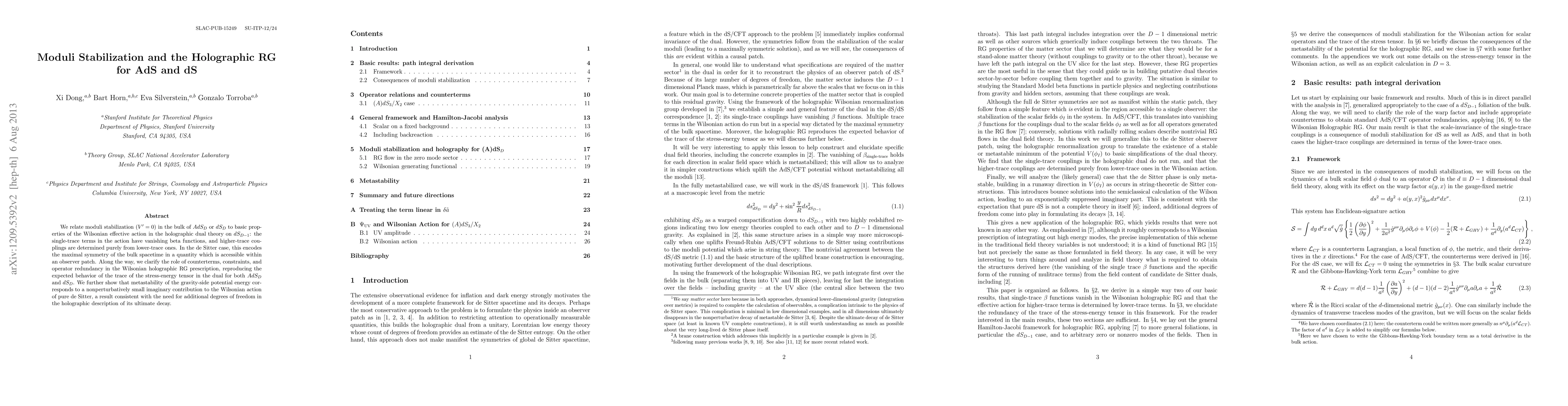 We relate moduli stabilization ($V'=0$) in the bulk of $AdS_D$ or $dS_D$ to basic properties of the Wilsonian effective action in the holographic dual theory on $dS_{D-1}$: the single-trace terms in the action have vanishing beta functions, and higher-trace couplings are determined purely from lower-trace ones. In the de Sitter case, this encodes the maximal symmetry of the bulk spacetime in a quantity which is accessible within an observer patch. Along the way, we clarify the role of counterterms, constraints, and operator redundancy in the Wilsonian holographic RG prescription, reproducing the expected behavior of the trace of the stress-energy tensor in the dual for both $AdS_D$ and $dS_D$. We further show that metastability of the gravity-side potential energy corresponds to a nonperturbatively small imaginary contribution to the Wilsonian action of pure de Sitter, a result consistent with the need for additional degrees of freedom in the holographic description of its ultimate decay.