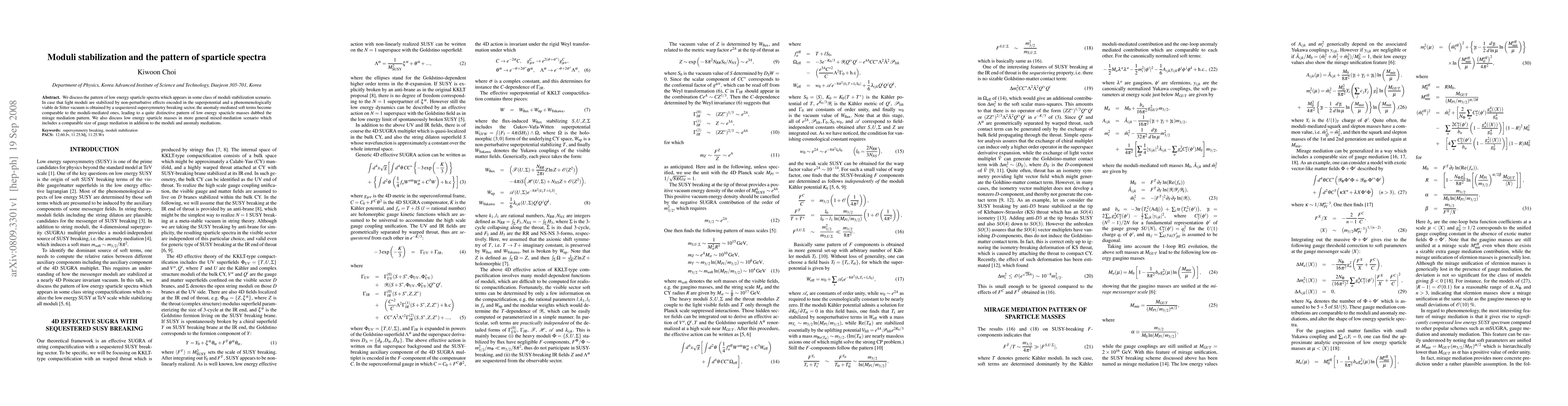 This paper explores the distinctive pattern of low energy sparticle spectra in moduli stabilization scenarios, particularly the mirage mediation pattern when light moduli are stabilized by non-perturbative effects, leading to comparable anomaly-mediated and moduli-mediated soft terms. It also examines mixed-mediation scenarios where gauge mediation is included alongside moduli and anomaly mediations.