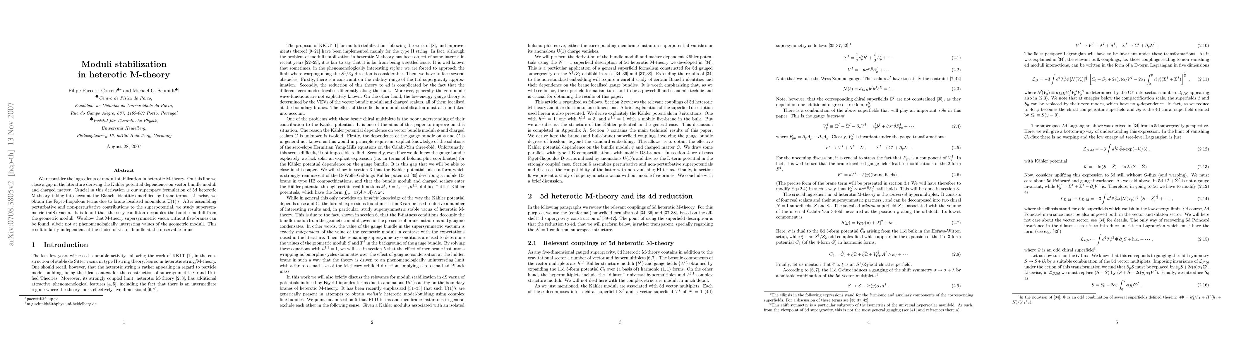 We reconsider the ingredients of moduli stabilization in heterotic M-theory. On this line we close a gap in the literature deriving the Kaehler potential dependence on vector bundle moduli and charged matter. Crucial in this derivation is our superspace formulation of 5d heterotic M-theory taking into account the Bianchi identities modified by brane terms. Likewise, we obtain the Fayet-Iliopolous terms due to brane localised anomalous U(1)'s. After assembling perturbative and non-perturbative contributions to the superpotential, we study supersymmetric (adS) vacua. It is found that the susy condition decouples the bundle moduli from the geometric moduli. We show that M-theory supersymmetric vacua without five-branes can be found, albeit not at phenomenologically interesting values of the geometric moduli. This result is fairly independent of the choice of vector bundle at the observable brane.