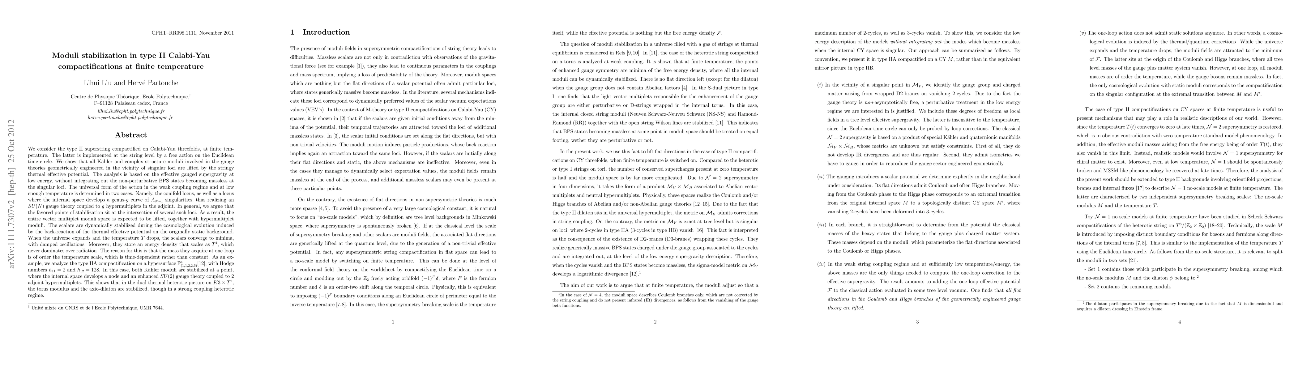 Researchers show that moduli stabilization occurs in type II Calabi-Yau compactifications at finite temperature, lifting the entire vector multiplet and hypermultiplet moduli space.