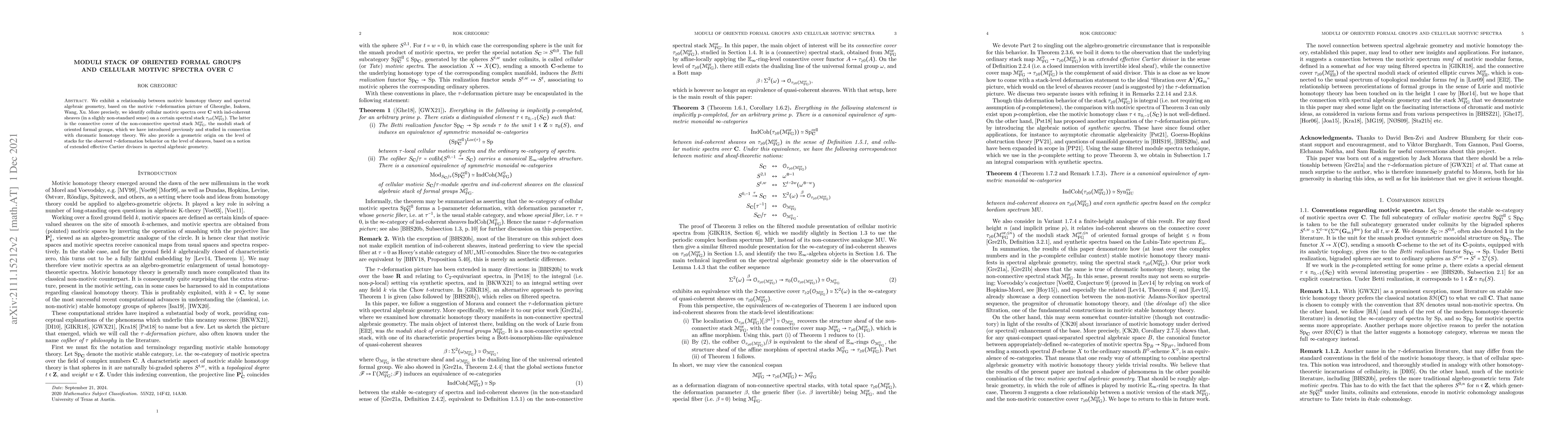 This paper establishes a link between motivic homotopy theory and spectral algebraic geometry by identifying cellular motivic spectra over $\mathbf C$ with ind-coherent sheaves on a spectral stack $\tau_{\ge 0}(\mathcal M_\mathrm{FG}^\mathrm{or})$, which is the connective cover of the moduli stack of oriented formal groups. It also introduces extended effective Cartier divisors to explain $\tau$-deformation behavior.