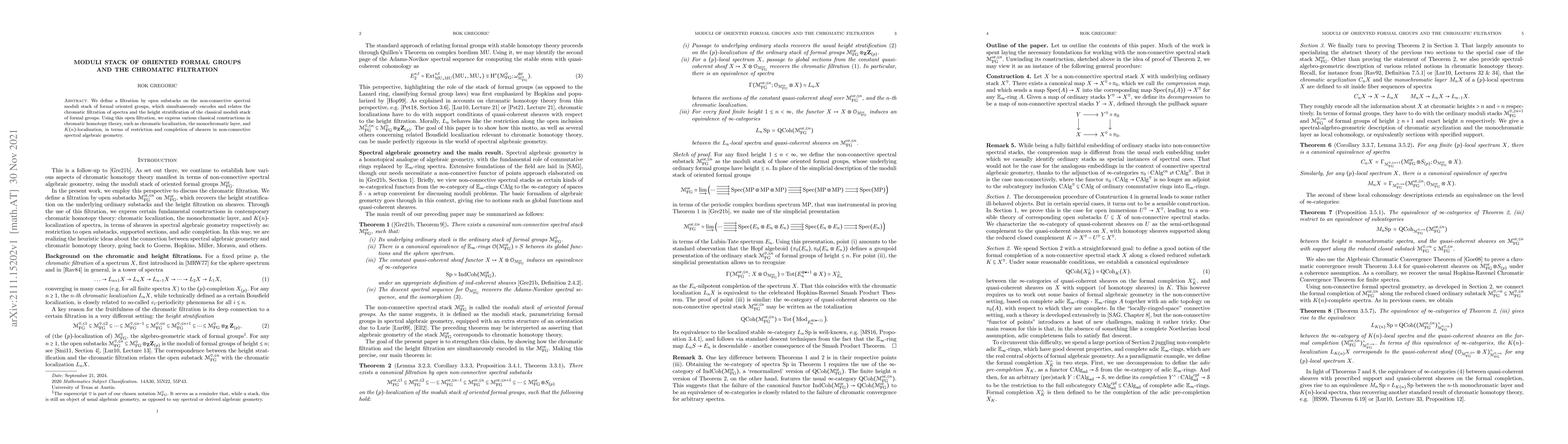 This paper introduces a filtration on the moduli stack of oriented formal groups that connects the chromatic filtration of spectra with the height stratification of classical formal group moduli. It uses this filtration to reinterpret chromatic homotopy theory constructions in terms of sheaves in non-connective spectral algebraic geometry.