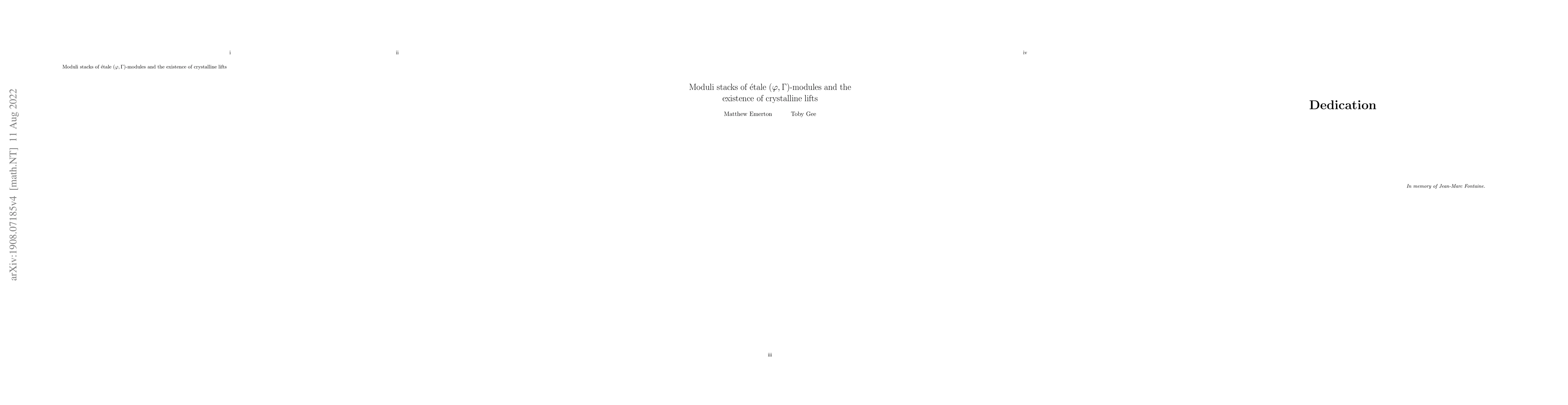 This paper constructs algebraic stacks that parameterize \'etale (phi,Gamma)-modules, showing that all mod p Galois representations lift to characteristic zero and admit crystalline lifts. It also explores the connection between these stacks and the Breuil-M\'ezard conjecture.