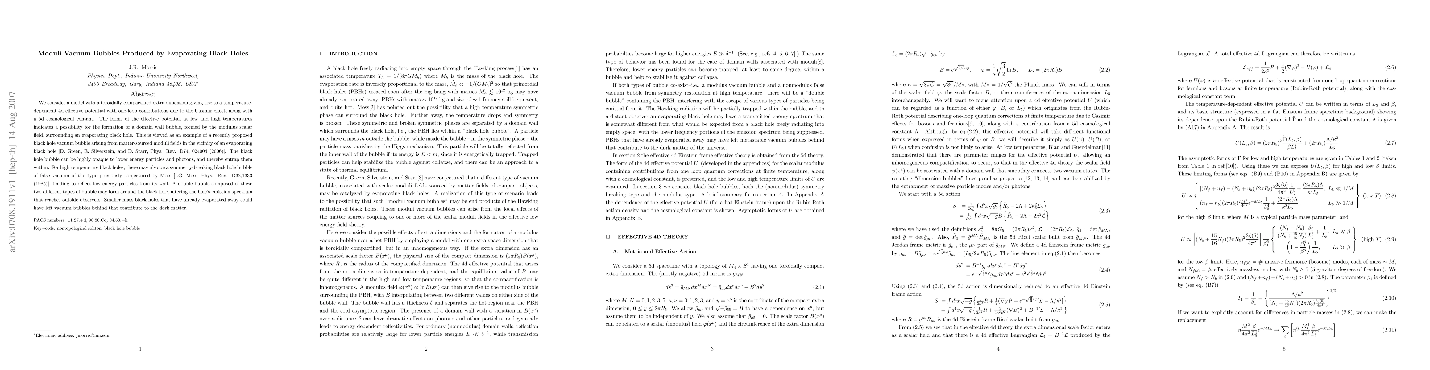 This paper explores the formation of vacuum bubbles around evaporating black holes in a model with a compact extra dimension, driven by a modulus scalar field. These bubbles can trap lower energy particles and photons, potentially contributing to dark matter from remnants of evaporated black holes.