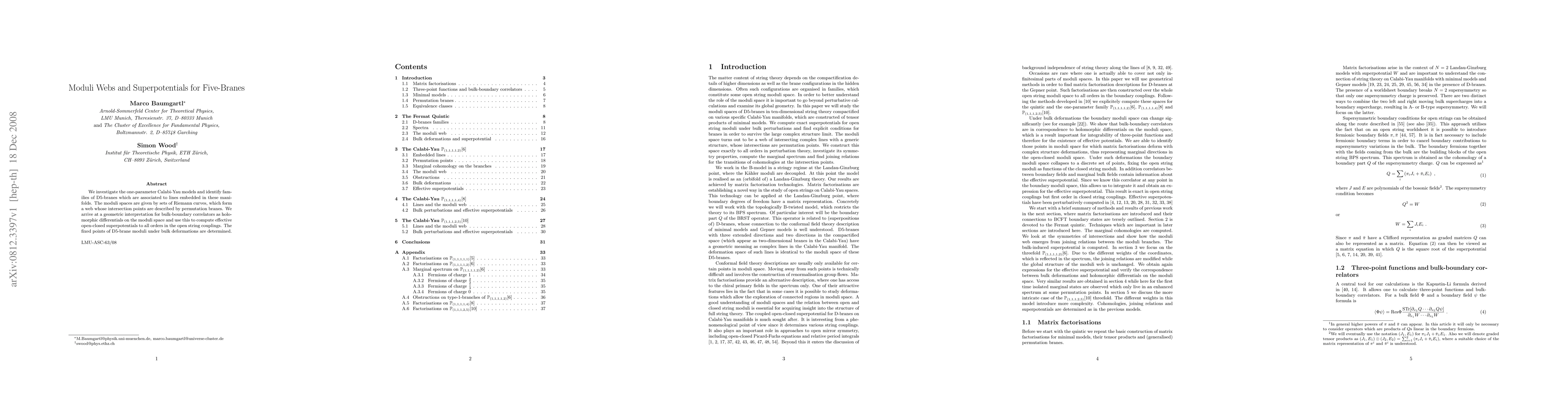 This paper explores one-parameter Calabi-Yau models and identifies D5-brane families associated with embedded lines, revealing moduli spaces as Riemann curves forming a web. It computes effective open-closed superpotentials and determines fixed points of D5-brane moduli under bulk deformations.