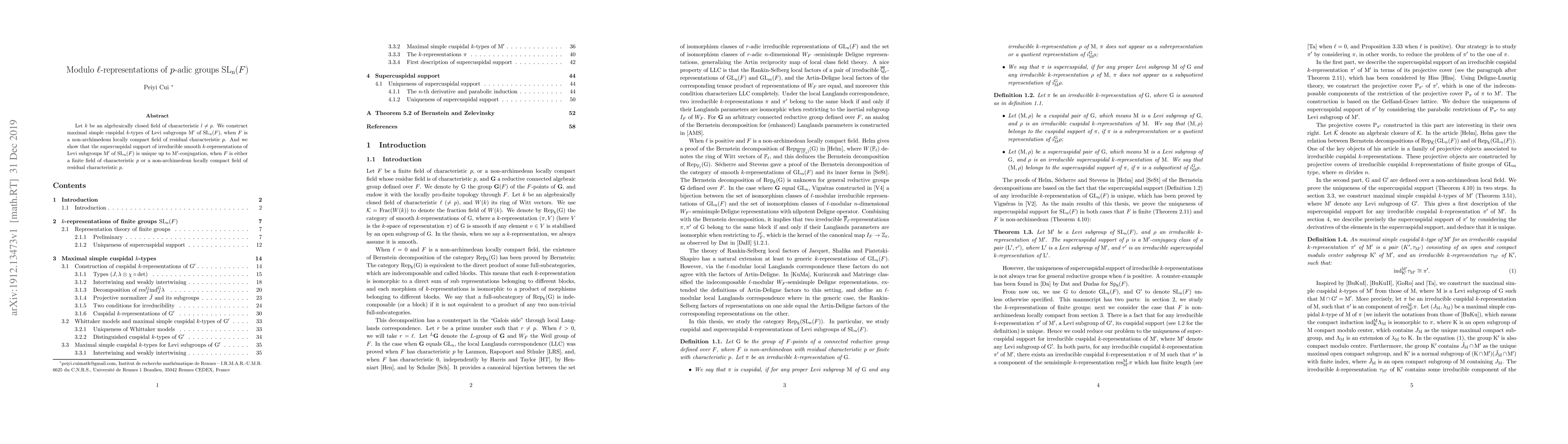 Let $k$ be an algebraically closed field of characteristic $l\neq p$. We construct maximal simple cuspidal $k$-types of Levi subgroups $\mathrm{M}'$ of $\mathrm{SL}_n(F)$, when $F$ is a non-archimedean locally compact field of residual characteristic $p$. We show that the supercuspidal support of irreducible smooth $k$-representations of Levi subgroups $\mathrm{M}'$ of $\mathrm{SL}_n(F)$ is unique up to $\mathrm{M}'$-conjugation, when $F$ is either a finite field of characteristic $p$ or a non-archimedean locally compact field of residual characteristic $p$.