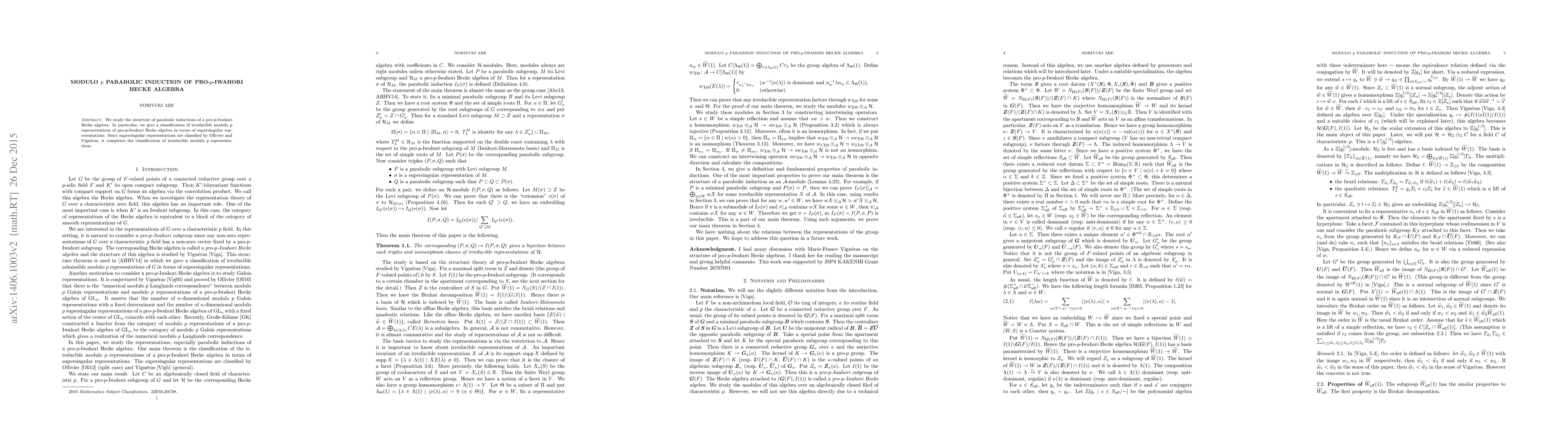 The paper classifies irreducible modulo $p$ representations of the pro-$p$-Iwahori Hecke algebra, completing the classification by relating them to supersingular representations, as previously classified by Ollivier and Vigneras. This provides a comprehensive understanding of parabolic inductions within the algebra.