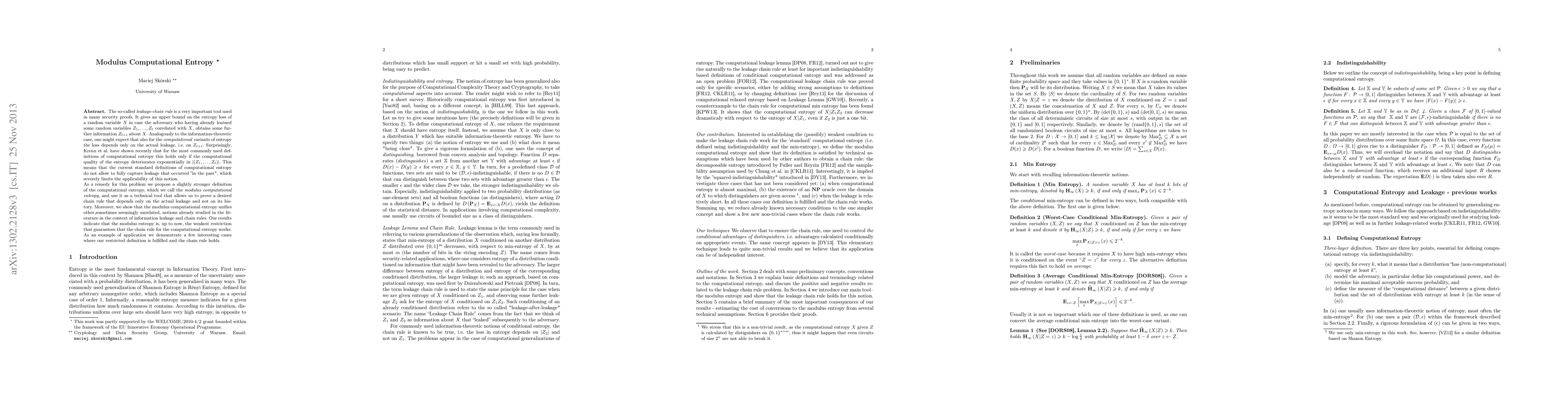 The so-called {\em leakage-chain rule} is a very important tool used in many security proofs. It gives an upper bound on the entropy loss of a random variable $X$ in case the adversary who having already learned some random variables $Z_{1},\ldots,Z_{\ell}$ correlated with $X$, obtains some further information $Z_{\ell+1}$ about $X$. Analogously to the information-theoretic case, one might expect that also for the \emph{computational} variants of entropy the loss depends only on the actual leakage, i.e. on $Z_{\ell+1}$. Surprisingly, Krenn et al.\ have shown recently that for the most commonly used definitions of computational entropy this holds only if the computational quality of the entropy deteriorates exponentially in $|(Z_{1},\ldots,Z_{\ell})|$. This means that the current standard definitions of computational entropy do not allow to fully capture leakage that occurred "in the past", which severely limits the applicability of this notion. As a remedy for this problem we propose a slightly stronger definition of the computational entropy, which we call the \emph{modulus computational entropy}, and use it as a technical tool that allows us to prove a desired chain rule that depends only on the actual leakage and not on its history. Moreover, we show that the modulus computational entropy unifies other,sometimes seemingly unrelated, notions already studied in the literature in the context of information leakage and chain rules. Our results indicate that the modulus entropy is, up to now, the weakest restriction that guarantees that the chain rule for the computational entropy works. As an example of application we demonstrate a few interesting cases where our restricted definition is fulfilled and the chain rule holds.