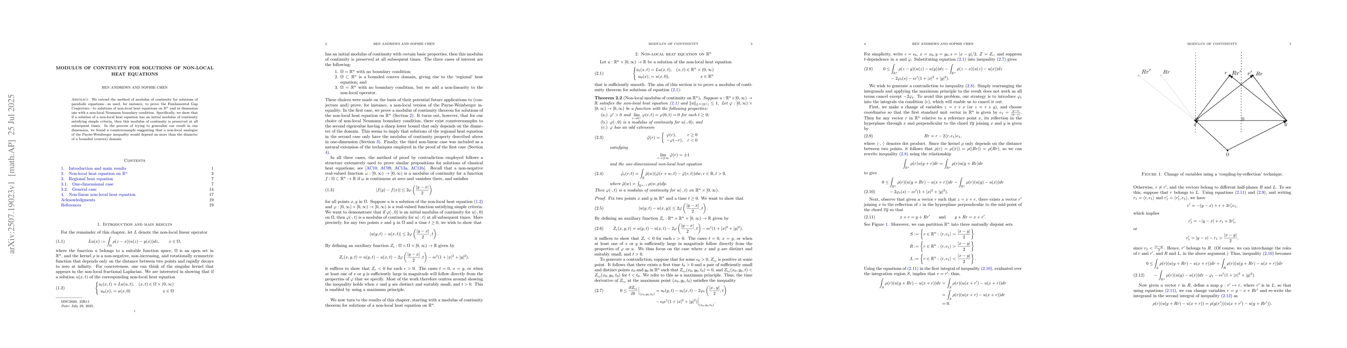 We extend the method of modulus of continuity for solutions of parabolic equations--as used, for instance, to prove the Fundamental Gap Conjecture--to solutions of non-local heat equations on R^n and in dimension one with a non-local Neumann boundary condition. Specifically, we show that if a solution of a non-local heat equation has an initial modulus of continuity satisfying simple criteria, then this modulus of continuity is preserved at all subsequent times. In the process of trying to generalise our result in one dimension, we found a counterexample suggesting that a non-local analogue of the Payne-Weinberger inequality would depend on more than the diameter of a bounded (convex) domain.