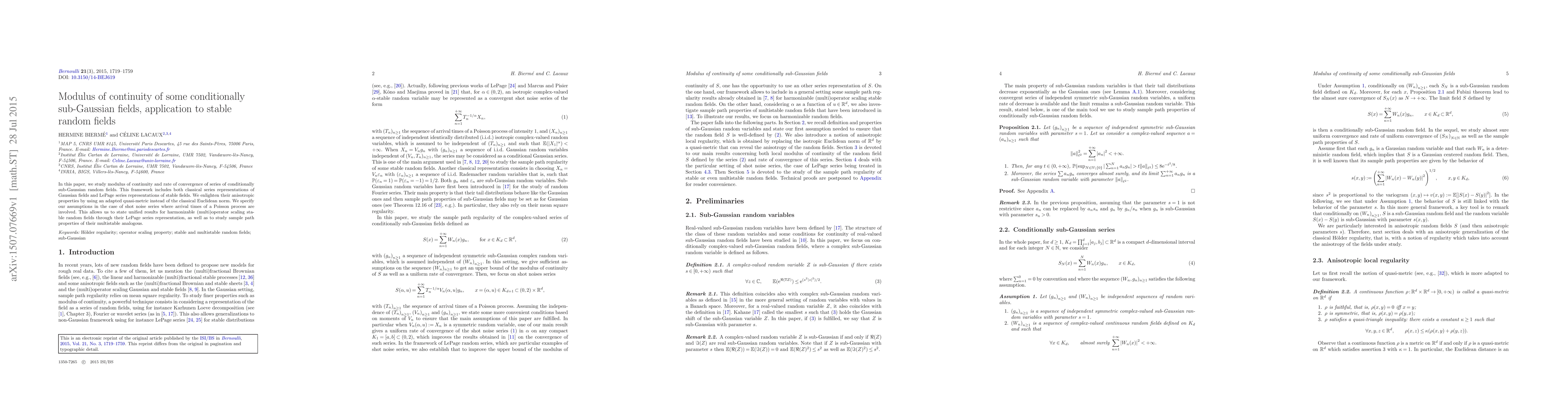 In this paper, we study modulus of continuity and rate of convergence of series of conditionally sub-Gaussian random fields. This framework includes both classical series representations of Gaussian fields and LePage series representations of stable fields. We enlighten their anisotropic properties by using an adapted quasi-metric instead of the classical Euclidean norm. We specify our assumptions in the case of shot noise series where arrival times of a Poisson process are involved. This allows us to state unified results for harmonizable (multi)operator scaling stable random fields through their LePage series representation, as well as to study sample path properties of their multistable analogous.