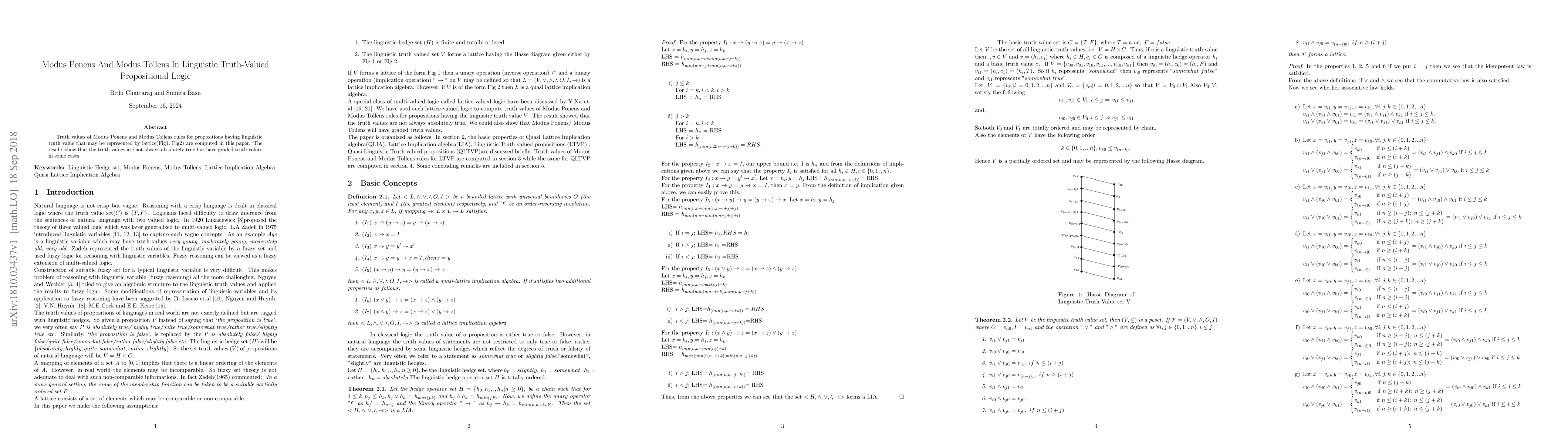 Truth values of Modus Ponens and Modus Tollens rules for propositions having linguistic truth value that may be represented by lattice(Fig1, Fig2) are computed in this paper. The results show that the truth values are not always absolutely true but have graded truth values in some cases.