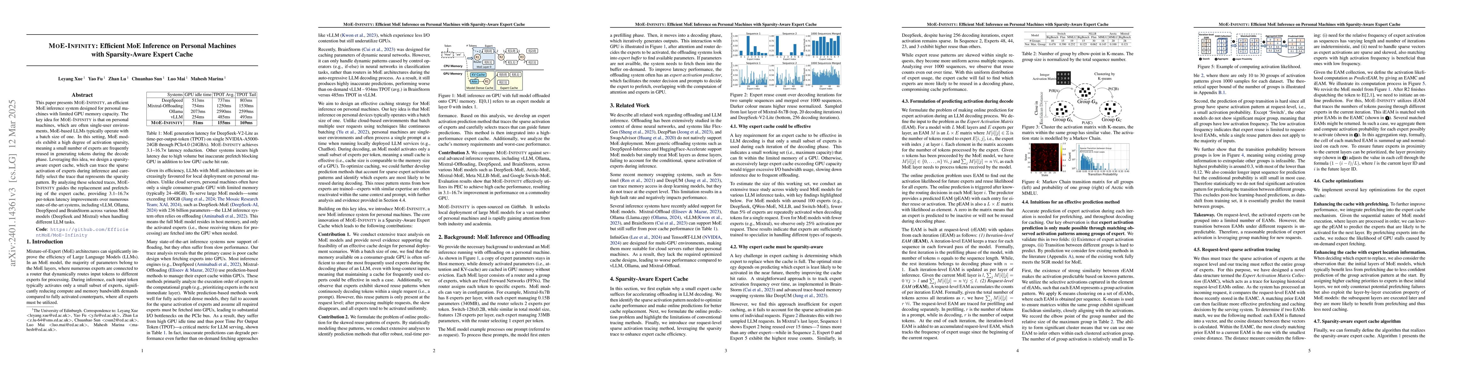 MoE-Infinity introduces an efficient serving system for mixture-of-expert (MoE) models by employing activation-aware expert offloading, significantly reducing latency and deployment costs. The system leverages sequence-level expert activation tracing to optimize expert prefetching and caching, achieving up to 20X latency reduction and 8X cost decrease.