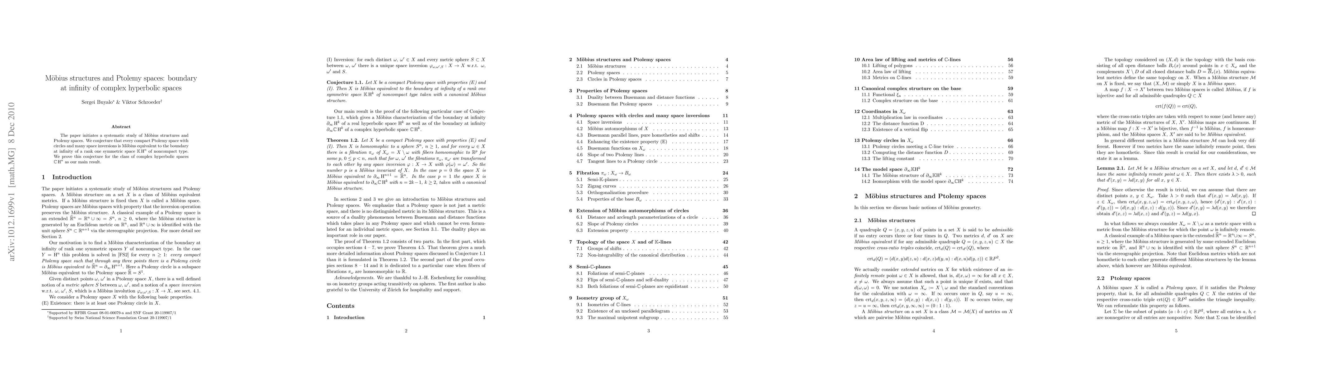 This paper explores Moebius structures and Ptolemy spaces, proposing a conjecture linking compact Ptolemy spaces with the boundary at infinity of complex hyperbolic spaces. The main result proves the conjecture for complex hyperbolic spaces.