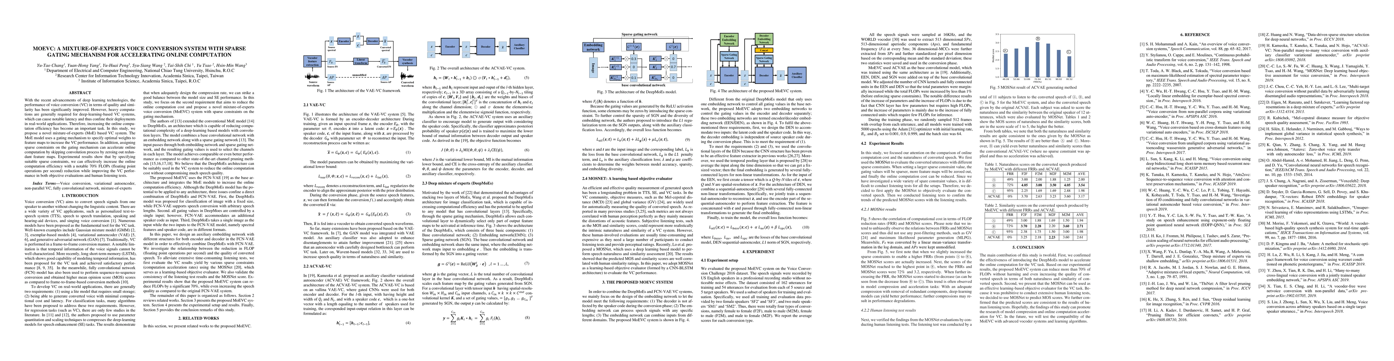 Researchers propose a new voice conversion system that improves performance while reducing computational latency by 70% through a novel mixture-of-experts model with sparse gating mechanisms.
