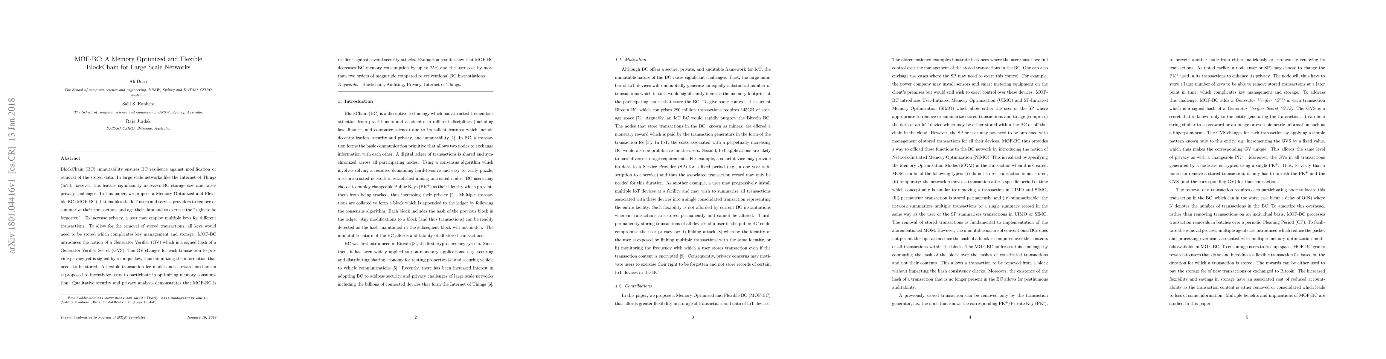 A new blockchain system called MOF-BC reduces storage size and increases user privacy in large-scale networks like IoT, by introducing a flexible transaction fee model and a reward mechanism to incentivize data optimization.