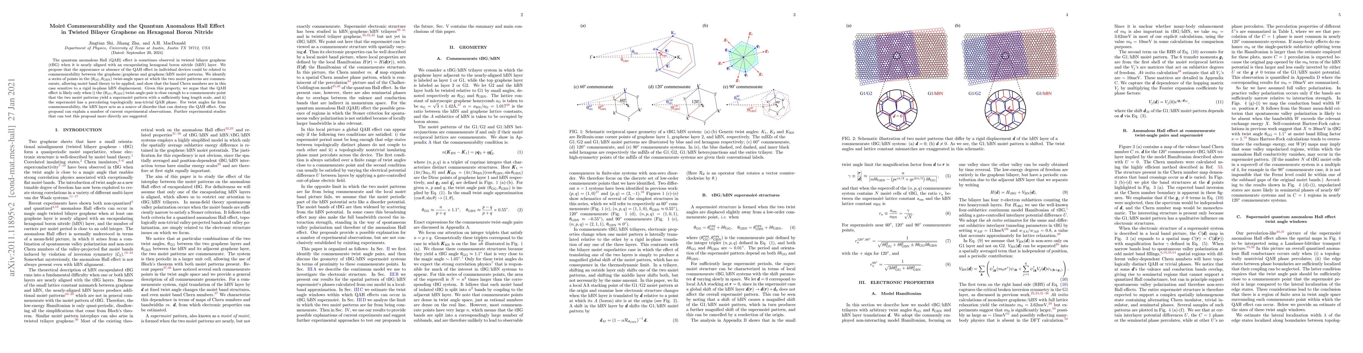 This paper explores the relationship between moiré commensurability in twisted bilayer graphene on hexagonal boron nitride and the quantum anomalous Hall effect. It posits that the QAH effect is likely when the twist angles are near commensurate points, leading to a supermoir\'e pattern with a large length scale and a percolating topologically non-trivial phase, while disorder from non-commensurate angles can suppress this effect.