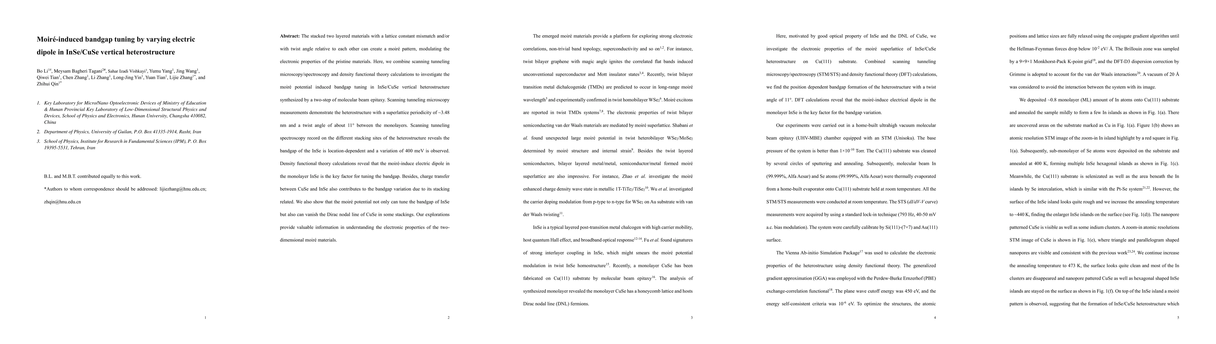 The paper presents a detailed analysis of moiré-induced bandgap tuning in InSe/CuSe heterostructure using advanced characterization techniques and DFT calculations.