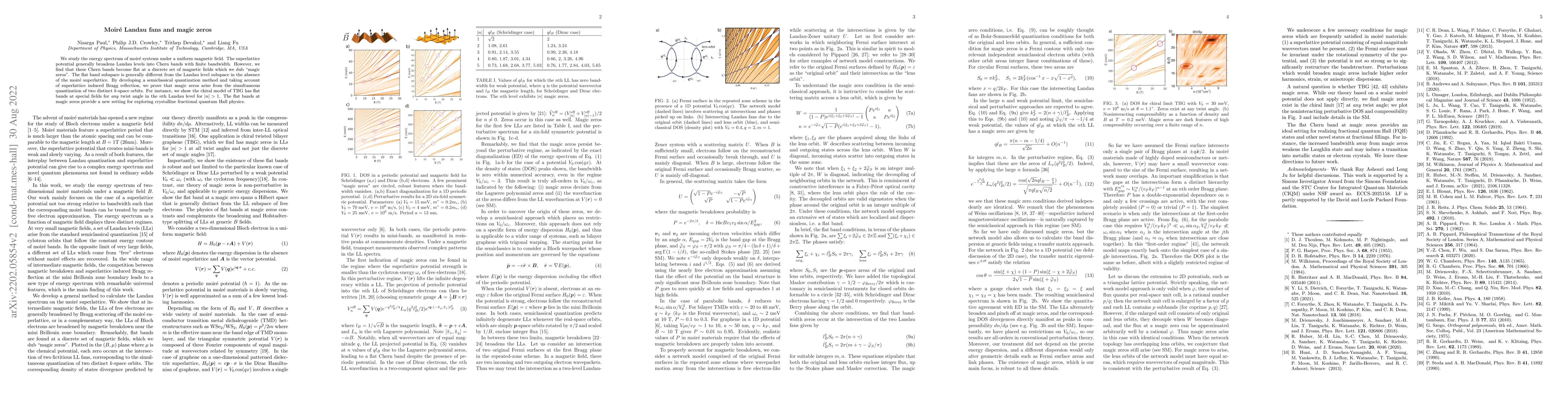 This paper investigates the energy spectrum of moiré systems under a magnetic field, revealing that Chern bands become flat at specific "magic zeros" magnetic field strengths. These flat bands arise from the simultaneous quantization of two distinct $k$-space orbits, offering a new platform for studying crystalline fractional quantum Hall physics.