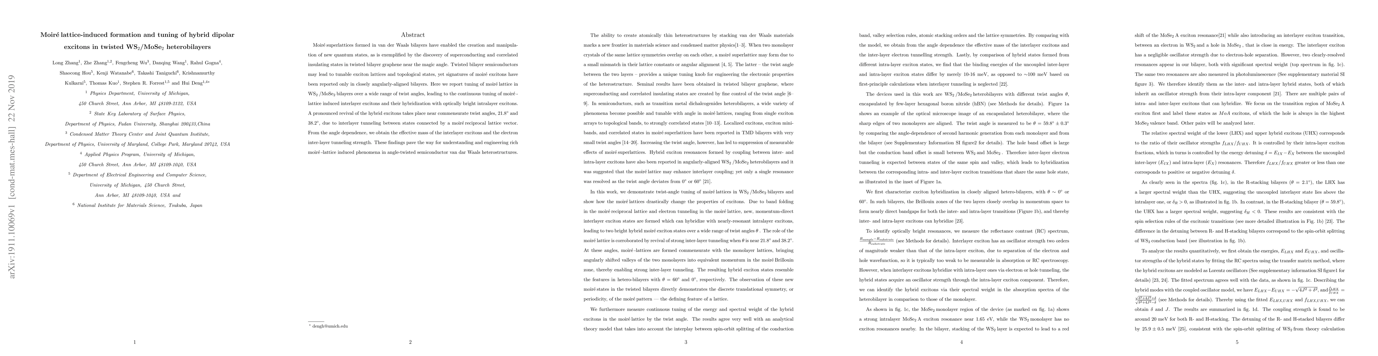 This research demonstrates the continuous tuning of moiré lattice-induced excitons in twisted WS$_2$/MoSe$_2$ bilayers, revealing hybridization between interlayer excitons and intralayer excitons. Near specific twist angles, a revival of hybrid excitons occurs due to interlayer tunneling, enabling precise determination of exciton mass and tunneling strength.