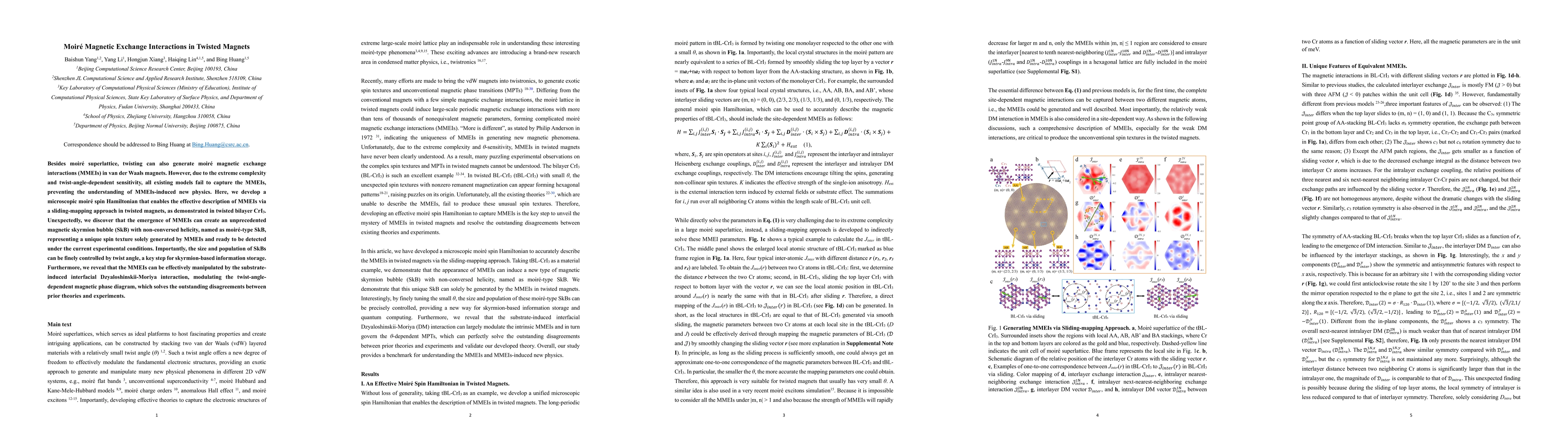 Besides moir\'e superlattice, twisting can also generate moir\'e magnetic exchange interactions (MMEIs) in van der Waals magnets. However, due to the extreme complexity and twist-angle-dependent sensitivity, all existing models fail to capture the MMEIs, preventing the understanding of MMEIs-induced new physics. Here, we develop a microscopic moir\'e spin Hamiltonian that enables the effective description of MMEIs via a sliding-mapping approach in twisted magnets, as demonstrated in twisted bilayer CrI3. Unexpectedly, we discover that the emergence of MMEIs can create an unprecedented magnetic skyrmion bubble (SkB) with non-conversed helicity, named as moir\'e-type SkB, representing a unique spin texture solely generated by MMEIs and ready to be detected under the current experimental conditions. Importantly, the size and population of SkBs can be finely controlled by twist angle, a key step for skyrmion-based quantum computing and information storage. Furthermore, we reveal that the MMEIs can be effectively manipulated by the substrate-induced interfacial Dzyaloshinskii-Moriya interaction, modulating the twist-angle-dependent magnetic phase diagram, which solves the outstanding disagreements between prior theories and experiments and verifies our theory.