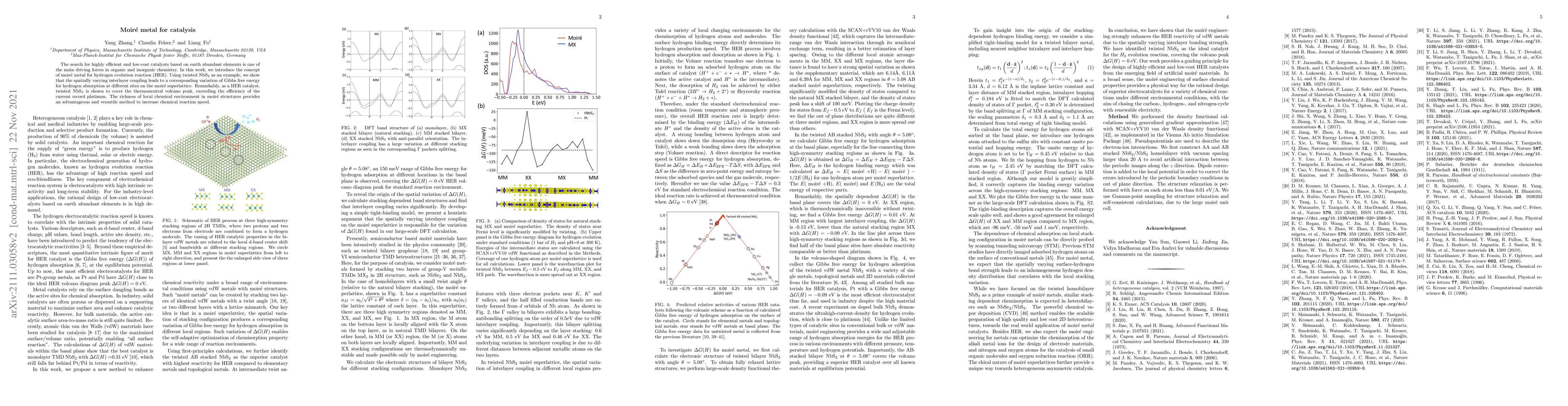 The search for highly efficient and low-cost catalysts based on earth abundant elements is one of the main driving forces in organic and inorganic chemistry. Current strategies for the heterogeneous catalyst design focus on increasing the density of active regions and the optimization of Gibbs free energy of chemical reaction via doping. In this work, we investigate the chemical properties of moire metal for hydrogen evolution reaction. We show that the local shift of metallic atoms introduces a variation in surface hydrogen bonding strength and leads to the spatially dependent Gibbs free energy for hydrogen absorption. Remarkably, the Gibbs free energy of AB stacked NbS2 is shown to cover the thermoneutral volcano peak, exceeding the efficiency of the current record platinum. The richness of local chemical environment in moire structures provides a unique way to tune the reactivity for various chemical reactions. Our study establishes a recipe for designing superior catalysts from the simple twist or stacking of formerly inactive catalytic metals, and proposes structural moire as a promising nanoengineering method to tune surface properties for chemical adsorption.