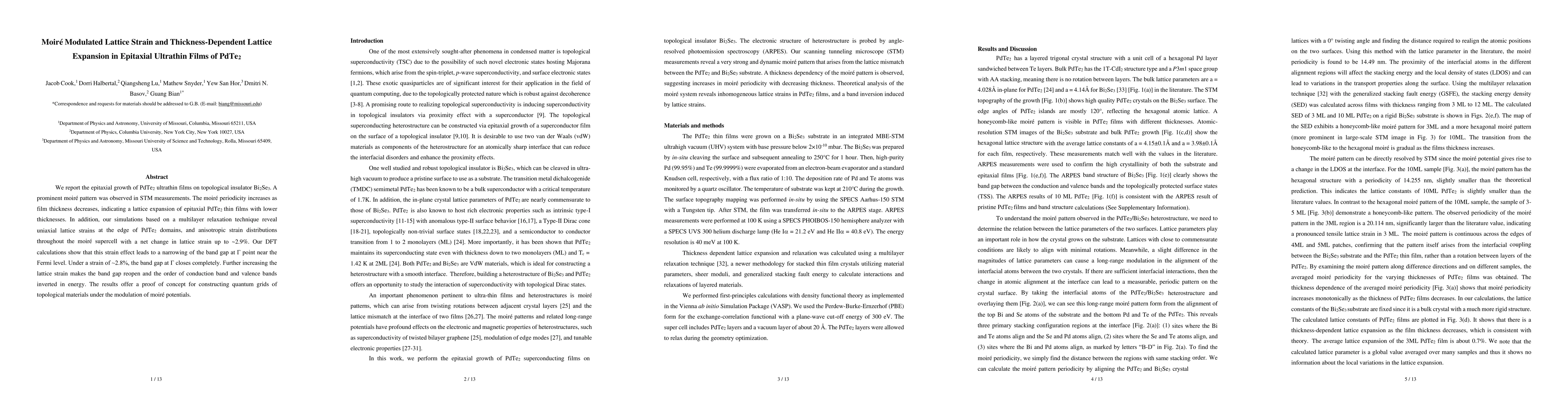This study investigates the epitaxial growth of PdTe$_2$ ultrathin films on Bi$_2$Se$_3$, revealing a Moir\'e pattern and thickness-dependent lattice expansion. Strain effects lead to a band gap narrowing and inversion, demonstrating potential for constructing quantum grids of topological materials.