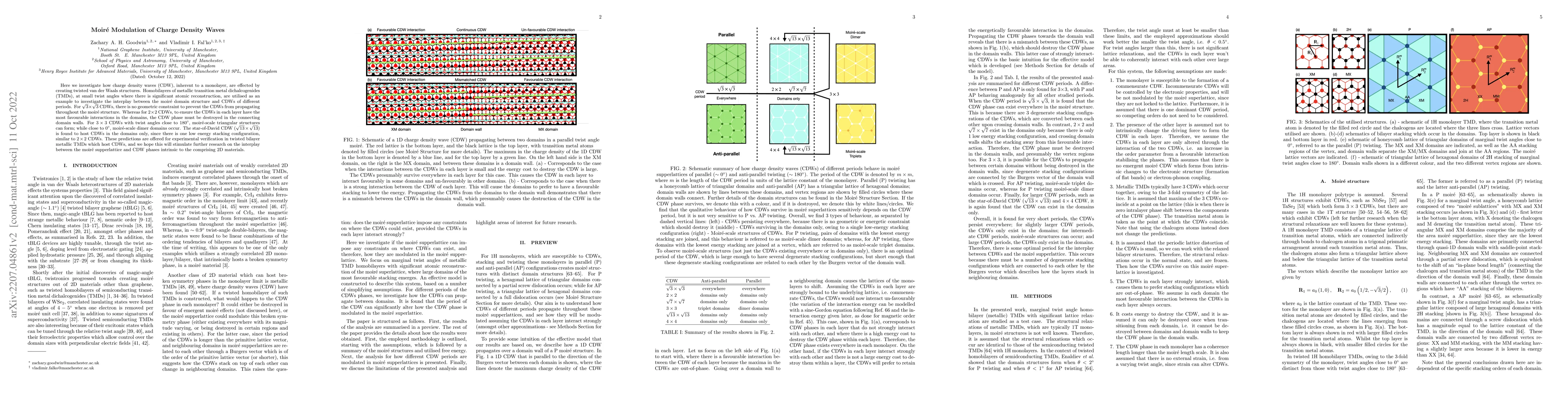 This paper investigates how charge density waves (CDWs) in monolayers are modulated by creating twisted van der Waals structures, particularly focusing on metallic transition metal dichalcogenides. It finds that different CDW periods interact variably with moiré domain structures, with implications for experimental verification in twisted bilayer systems.