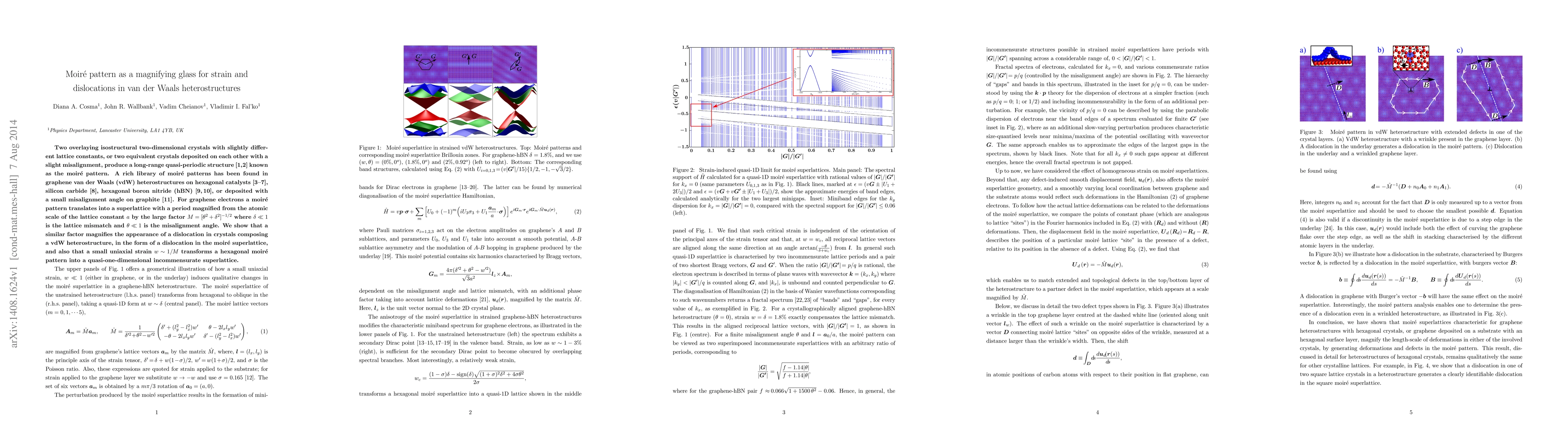 We consider the role of deformations in graphene heterostructures with hexagonal crystals (including strain, wrinkles and dislocations) on the geometrical properties of moire patterns characteristic for a pair of two incommensurate misaligned isostructural crystals. By, employing a phenomenological theory to describe generic moire perturbation in van der Waals heterostructures of graphene and hexagonal crystals we investigate the electronic properties of such heterostructure.
