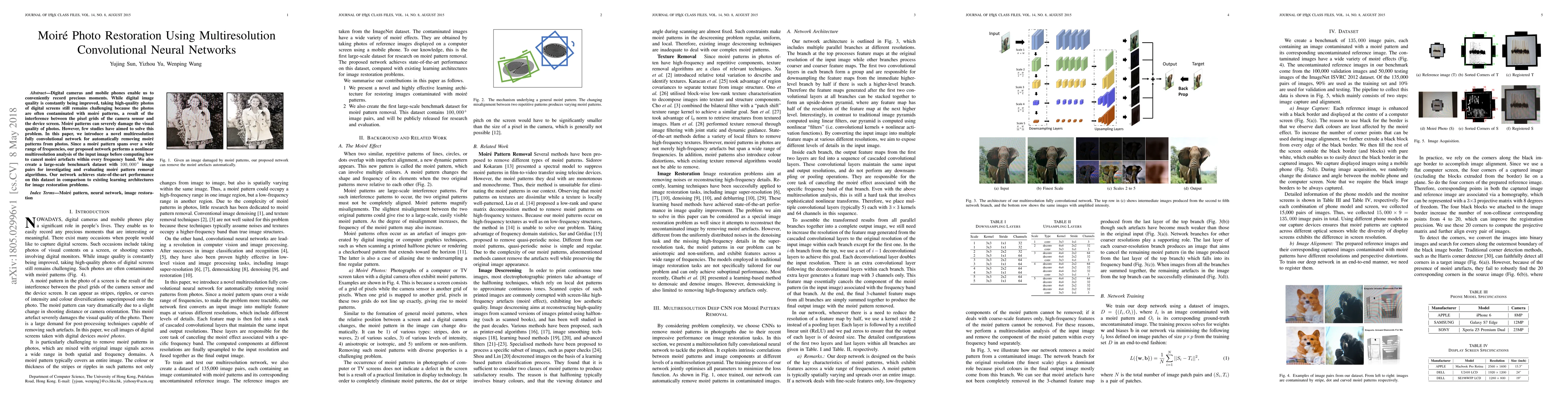 This paper proposes a multiresolution convolutional neural network to automatically remove moiré patterns from photos taken of digital screens, achieving state-of-the-art performance on a newly created benchmark dataset of over 100,000 image pairs. The network performs a nonlinear multiresolution analysis to effectively cancel moiré artifacts across various frequency bands.